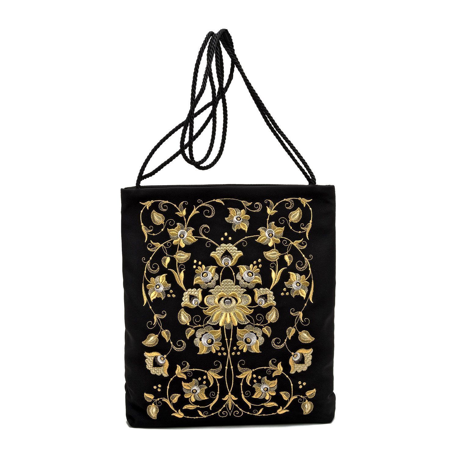 Сумка "Флора". Черная с вышивкой