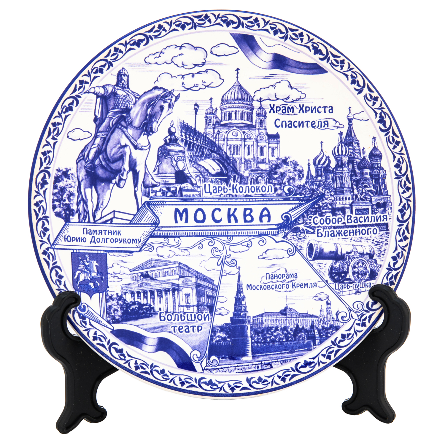 200407 Сувенир ТАРЕЛКА МОСКВА ХХС, d=12 см ГжельМотивы НФ-00013767