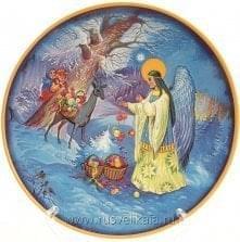 Добрый ангел несет детям игрушки, заботливо укладывая их в корзины. а дети наблюдают за чудесным явлением и не верят своим глазам... Рождественскую атмосферу и красоту природы Севера России передает авторская художественная композиция, которая украшает эту коллекционную сувенирную тарелку. Она станет прекрасным подарком на Новоселье, именины, День рождения для человека, который интересуется историей Москвы и любит авторские интерьерные аксессуары....