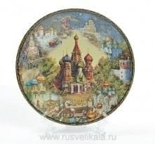 Перед Вами - авторский элемент декора для интерьера и ходовой сувенир, украшенный коллажной художественной композицией. В центре тарелки изображен Собор Василия Блаженного, который окружен другими известными достопримечательностями Колоритная авторская композиция  с изображением русских церквей  порадует гостя столицы, в том числе иностранного, партнера по бизнесу и коллегу.