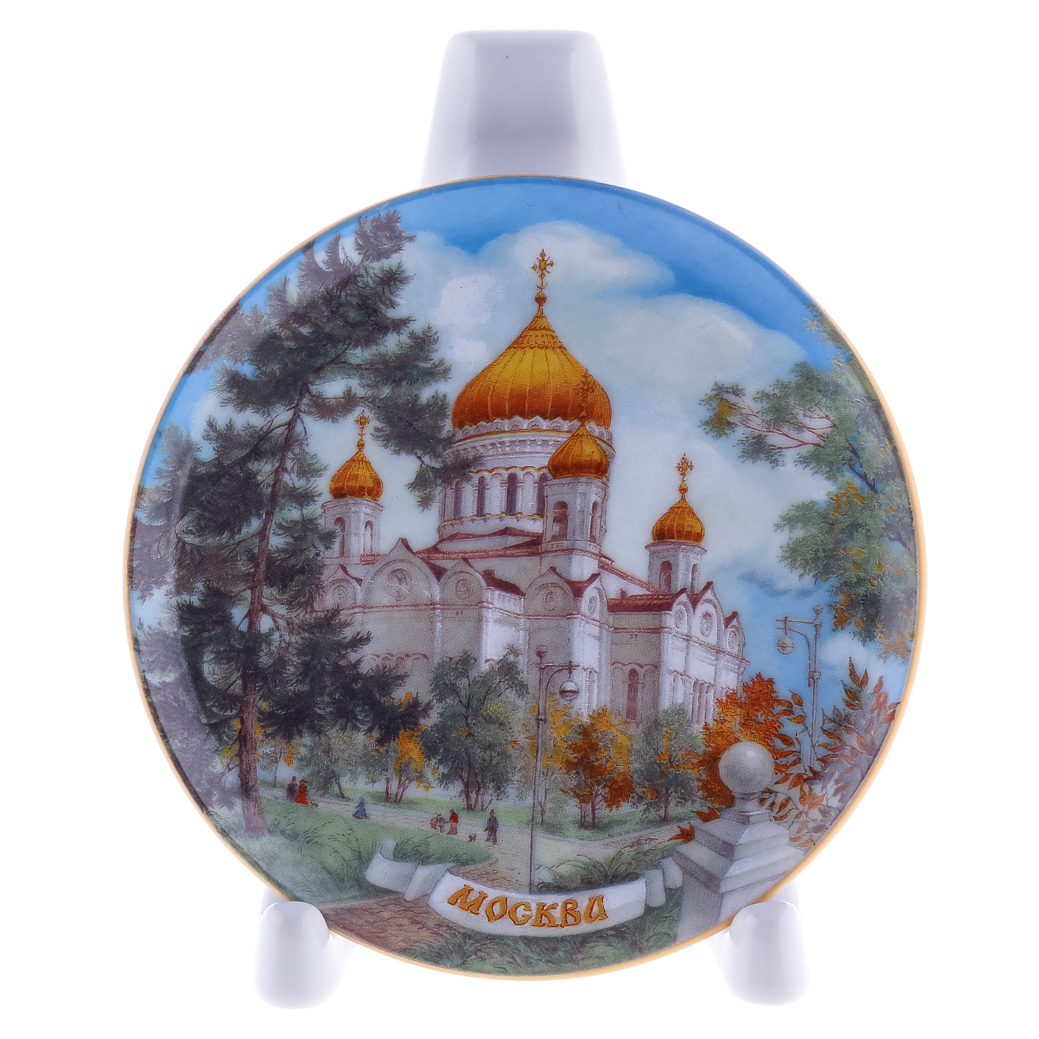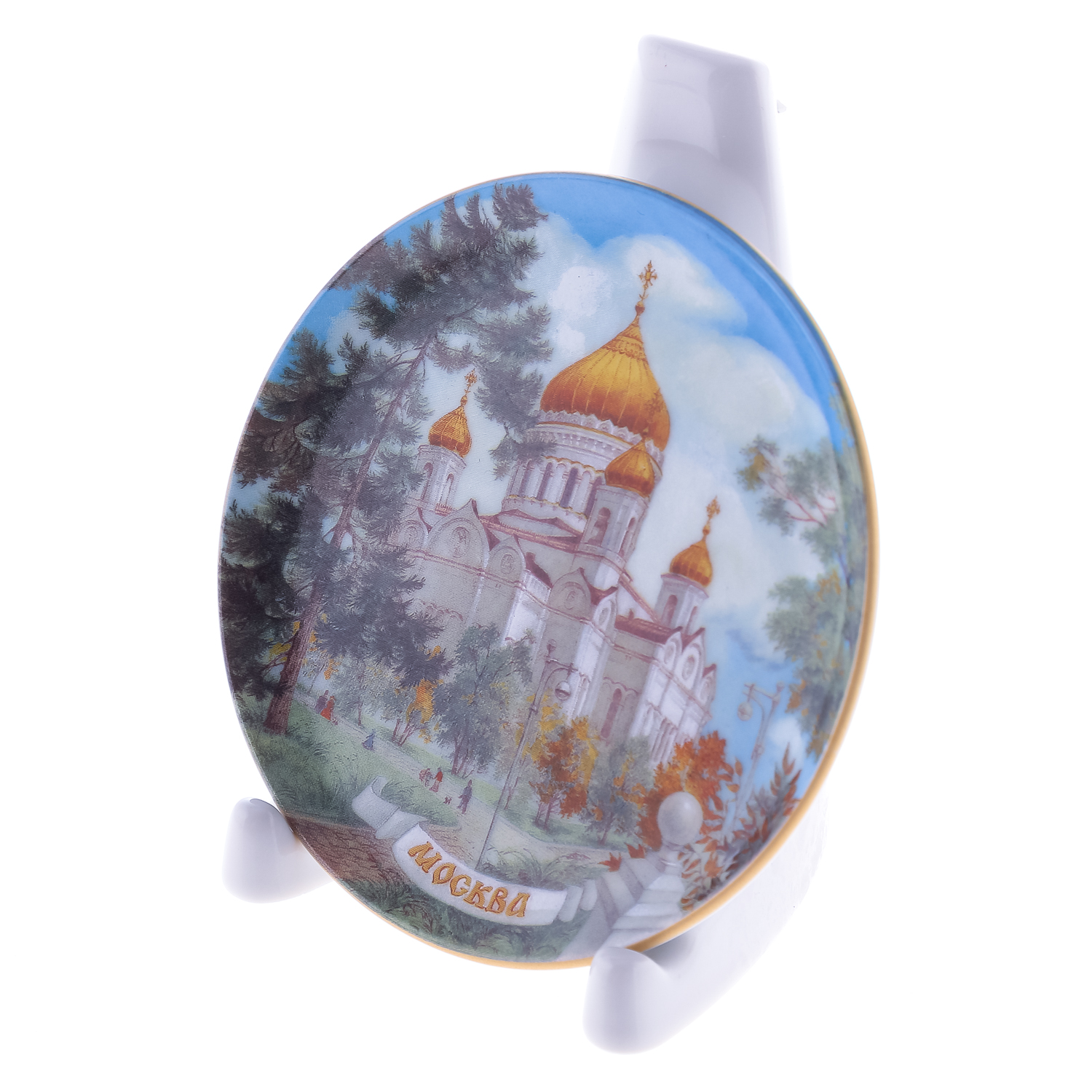 Сувенирная тарелка "Москва. Храм Христа Спасителя".Подставка в комплект не входит.