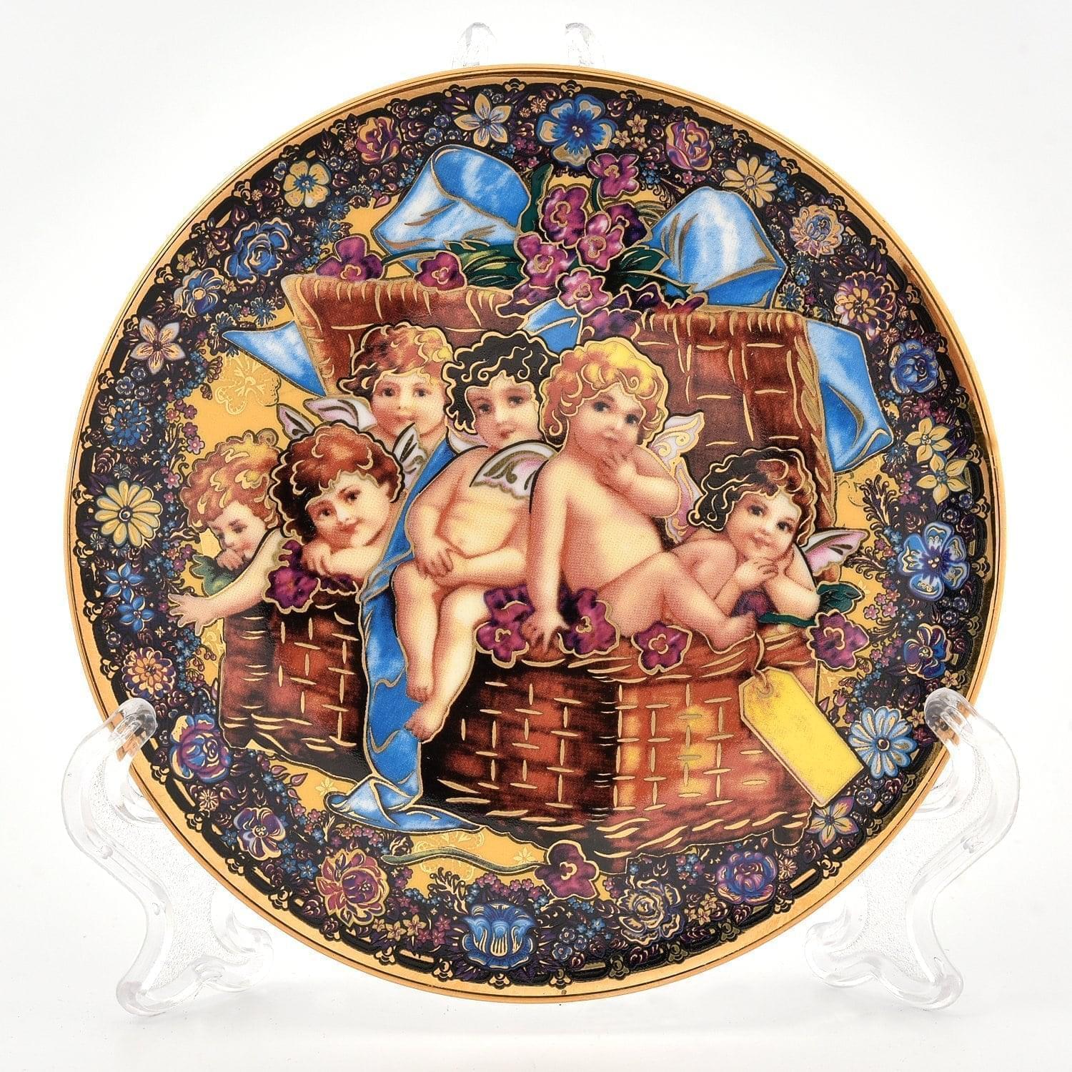 0011676 Фарфор ТАРЕЛКА сувенирная "Ангелы в корзинке" 12см в П/У
