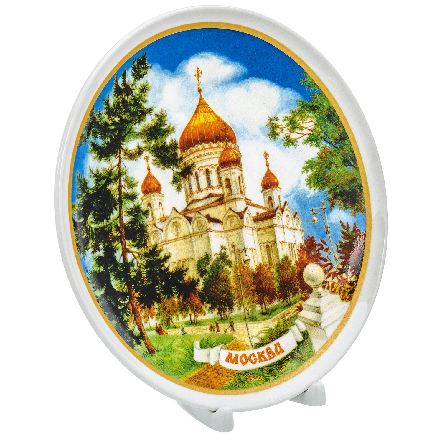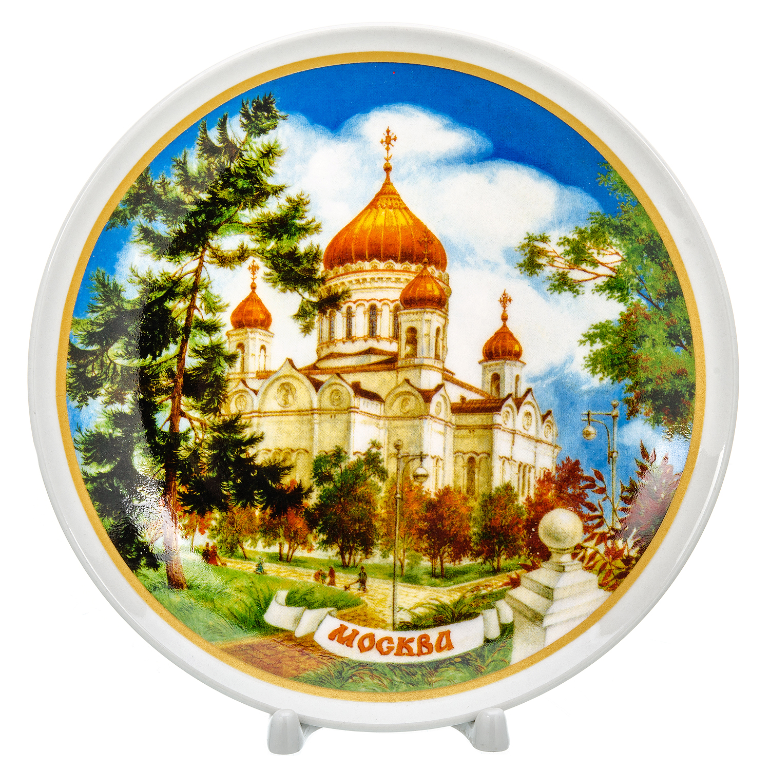 Тарелка сувенирная "Москва. Храм Христа Спасителя".Подставка в комплект не входит.