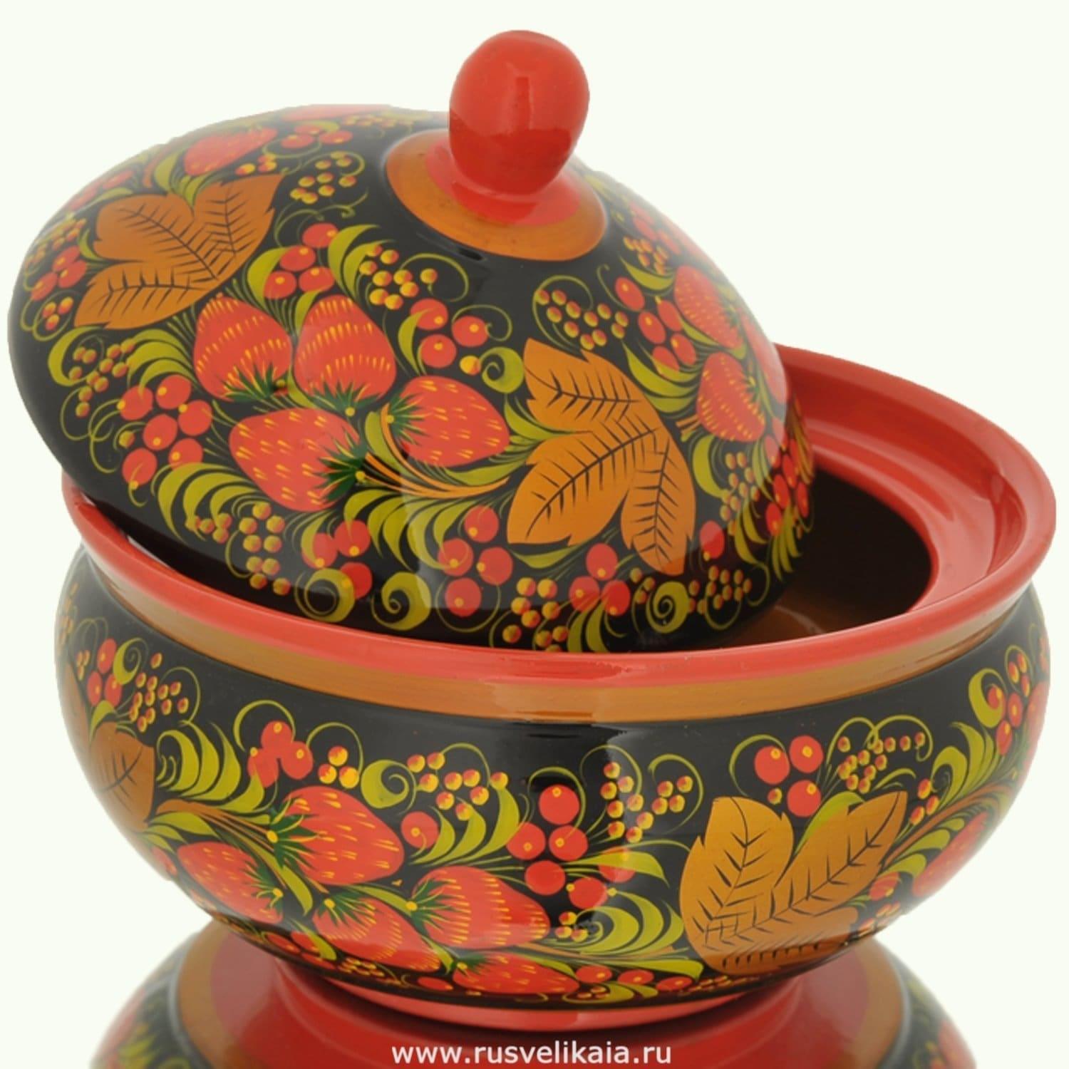 Сахарница Хохлома - практичное приобретение для кухни.Для ежедневного использования.