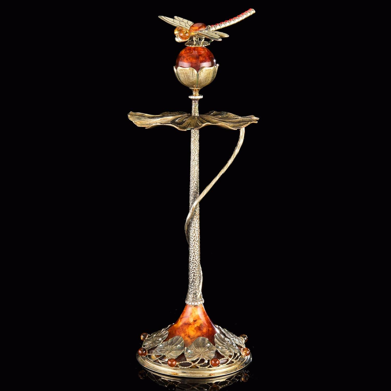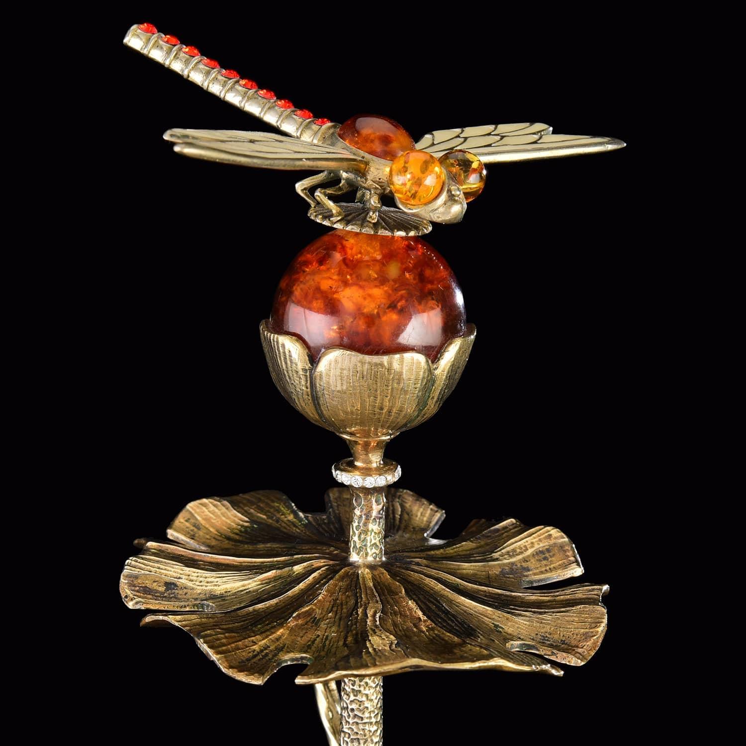 Корпус подставки для ложек со стрекозой является авторским образцом бронзового литья. Эксклюзивная работа российского художника по металлу, подставка с шестью серебряными ложками «Стрекоза» - это практичный и изысканный вариант vip-подарка на Рождение, Свадьбу, Юбилей, крестины, День рождения, общий или личный праздник.