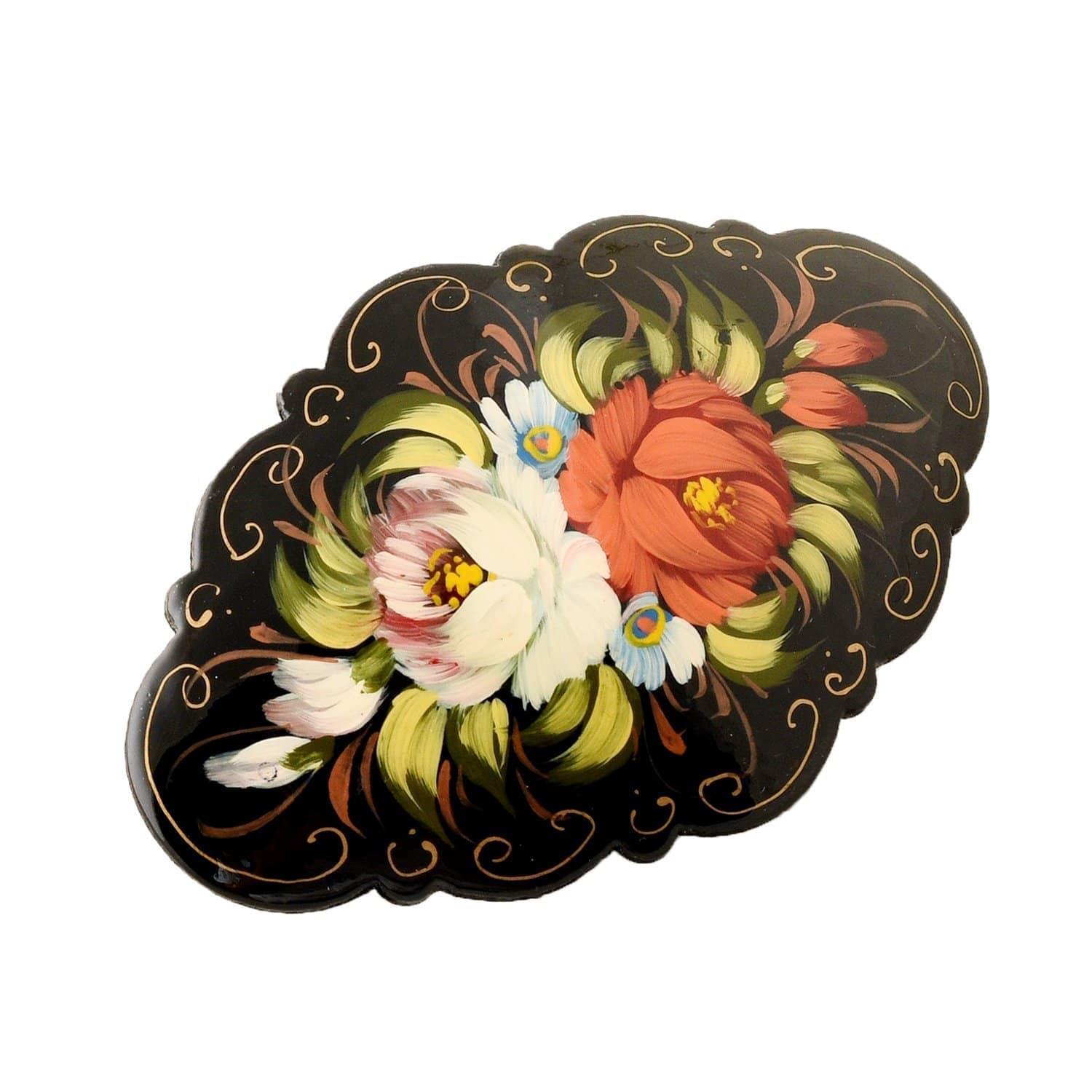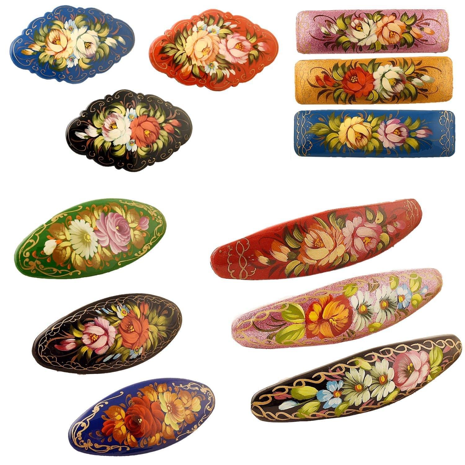 Русские подарки и сувениры → Сувениры → 0013104-4см-овал Сувенир ЗАКОЛКА ДЛЯ ВОЛОС ЖОСТОВО Ручная роспись в ассортименте