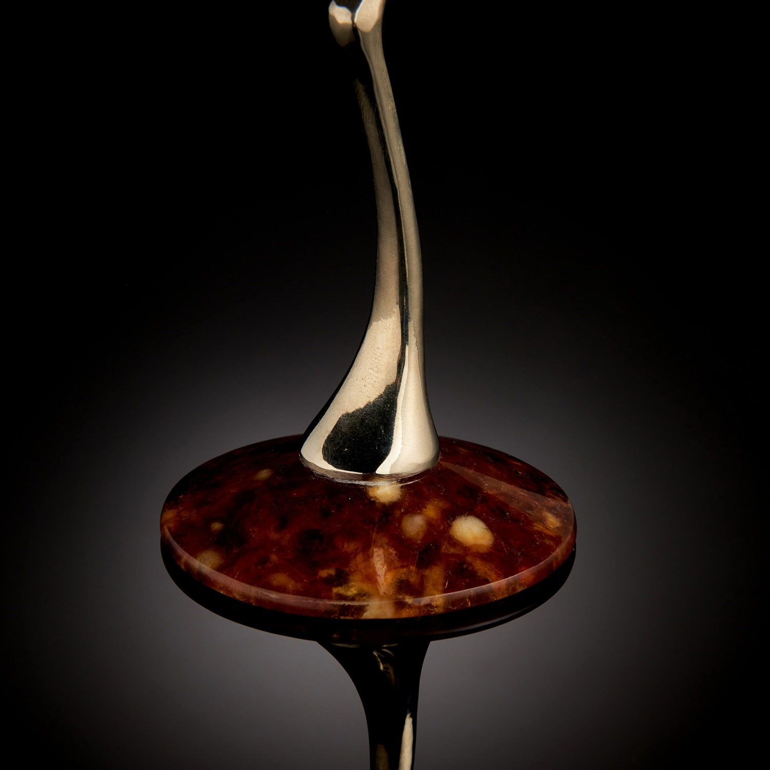 Бокал для мартини «Лето» выполнен из натурального янтаря медового цвета. Он не зря получил такое название. Ведь при одном взгляде на янтарь создаётся впечатление, что он хранит в себе лучи солнца. От этого камня веет теплотой и благородством. Бокал имеет изысканные очертания. Тонкая изящная ножка сделана из бронзы, цвет которой идеально дополнен мягким сиянием натурального янтаря.