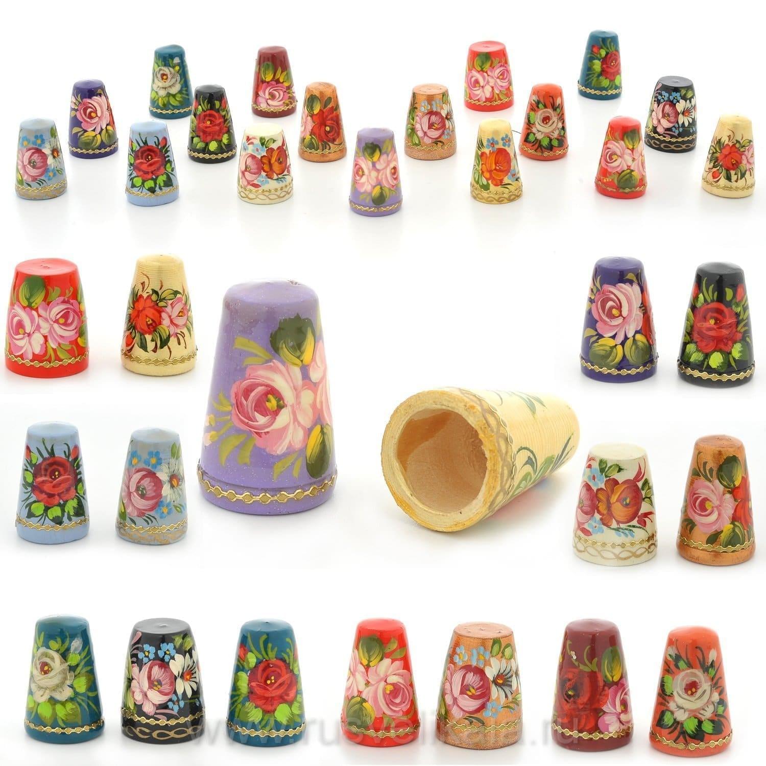Красные, розовые, голубые, черные, синие, оранжевые… И все как один с оригинальной цветочной росписью. Собрание классических наперстков с нетривиальным дизайном пополнило нашу большую коллекцию подарков для рукодельниц. Наперстки выточены из дерева, расписаны цветными красками и покрыты защитным лаком. Несмотря на небольшой размер – высота наперстка всего три сантиметра – художник детально проработал цветочный рисунок. Оригинальный наперсток не оставит равнодушной увлеченную рукоделием женщину. Красивый наперсток станет хорошим спонтанным подарком возлюбленной, сестре или маме.
