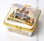 Шкатулка посвящена образу Москвы, о которой существует много интересных фактов. Вот лишь некоторые... В 1994 году подписано постановление, запрещающее собакам лаять с 23 до 7 часов ночи, за нарушение хозяев четвероногих правонарушителей ожидает штраф. Фраза «Москва слезам не верит» приписывается историками к временам, когда Московское княжество возвысилось над всеми. В ту эпоху с окружающих городов и деревень снималась внушительная дань, которая увеличивалась. Мольбы челобитчиков не принимались, многих, наоборот, наказывали. Тогда и родилось выражение «Москва слезам не потакает». Коренными москвичами могут считать себя живущие в городе четвертое поколение (сегодня таковых менее 2 процентов). Материал: фарфор, металл. .