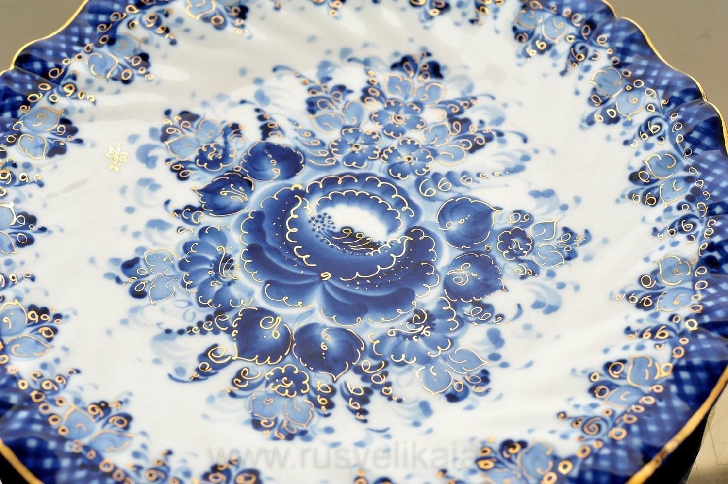 Гжель Тарелка мелкая №3 в золоте 20см Авт. Алехин С.С. ....Извините, товар отсутствует
