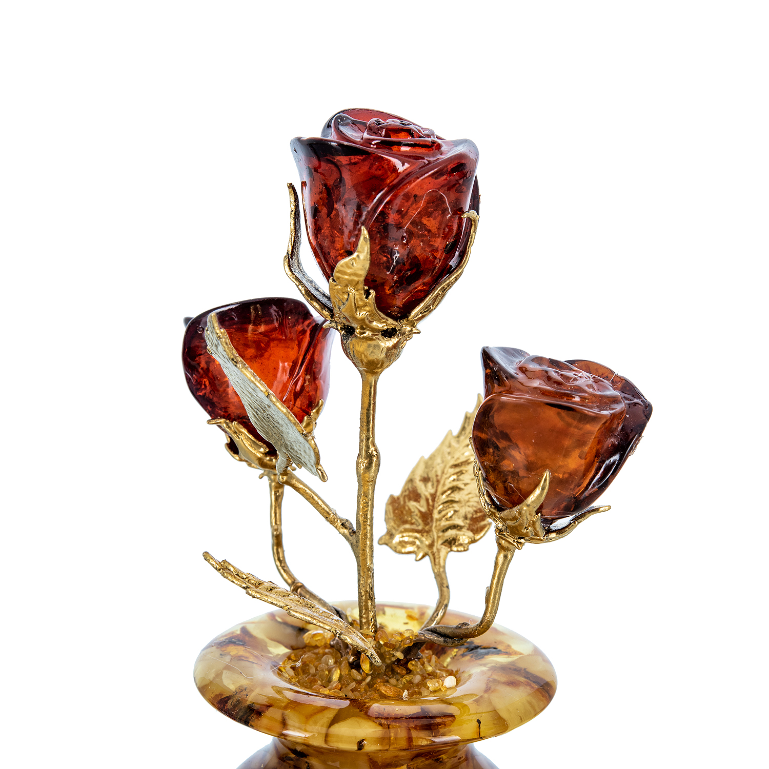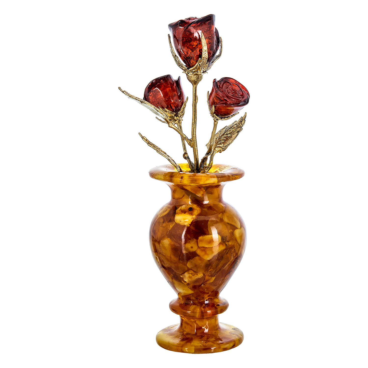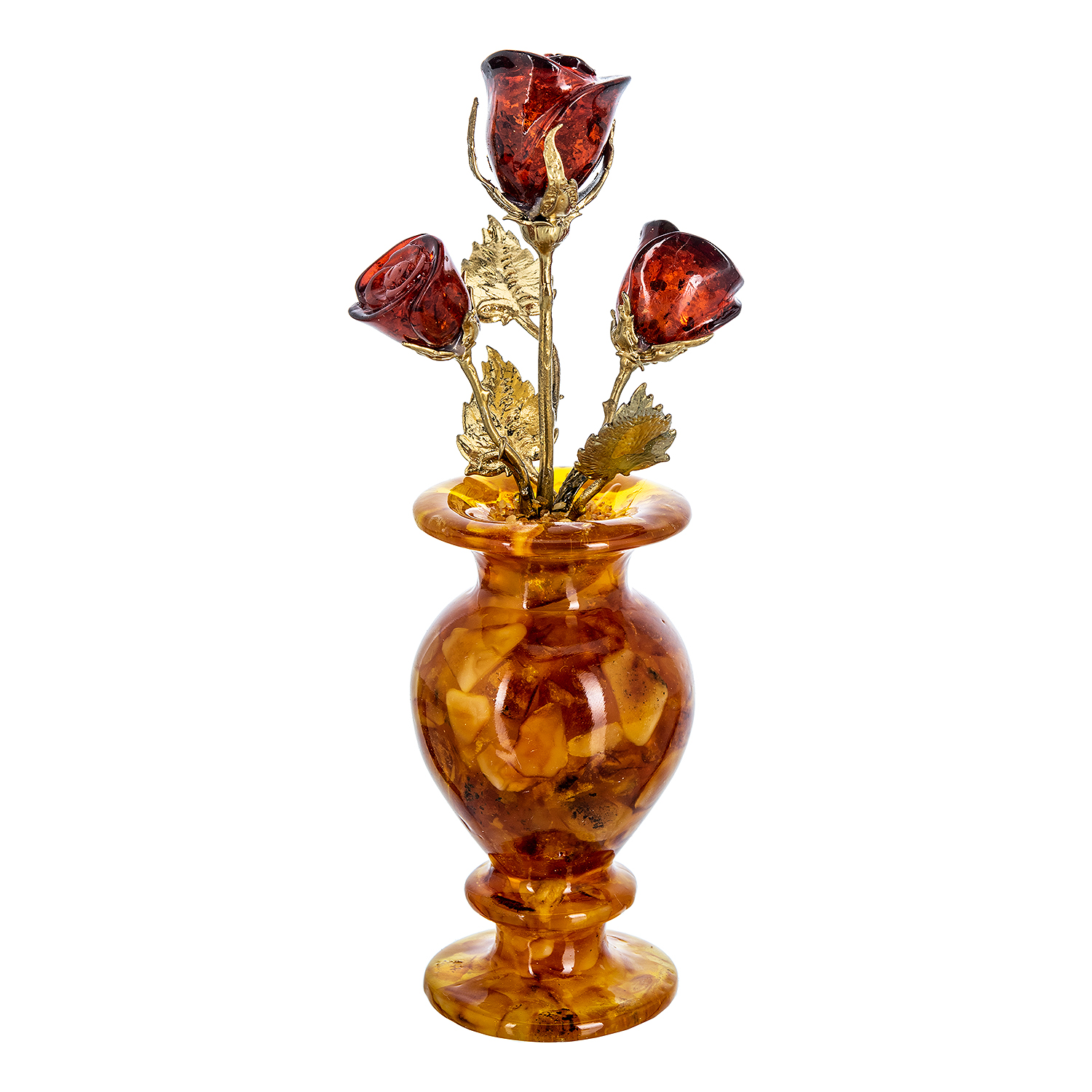 Янтарная композиция "Цветочная ваза. Три бутона"
