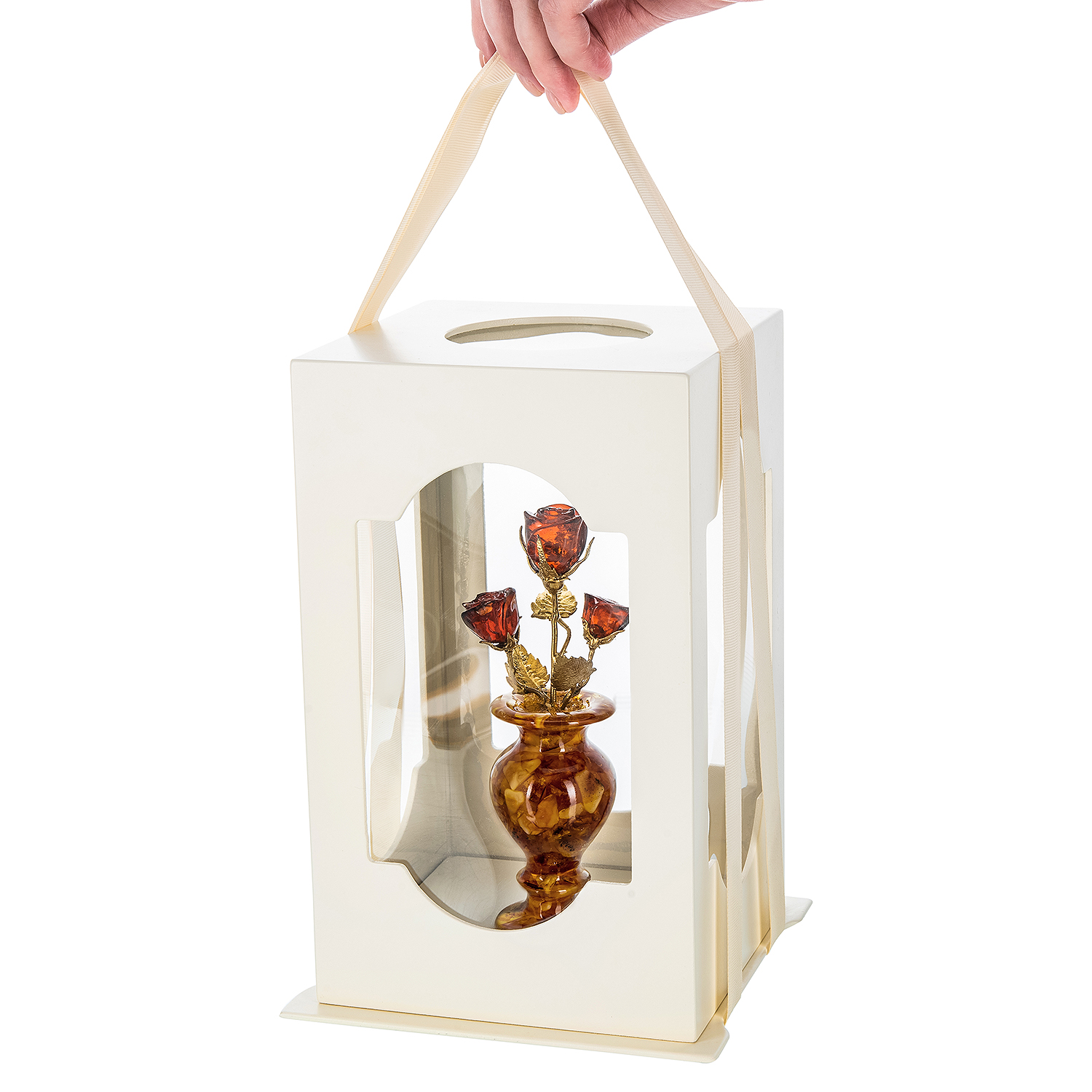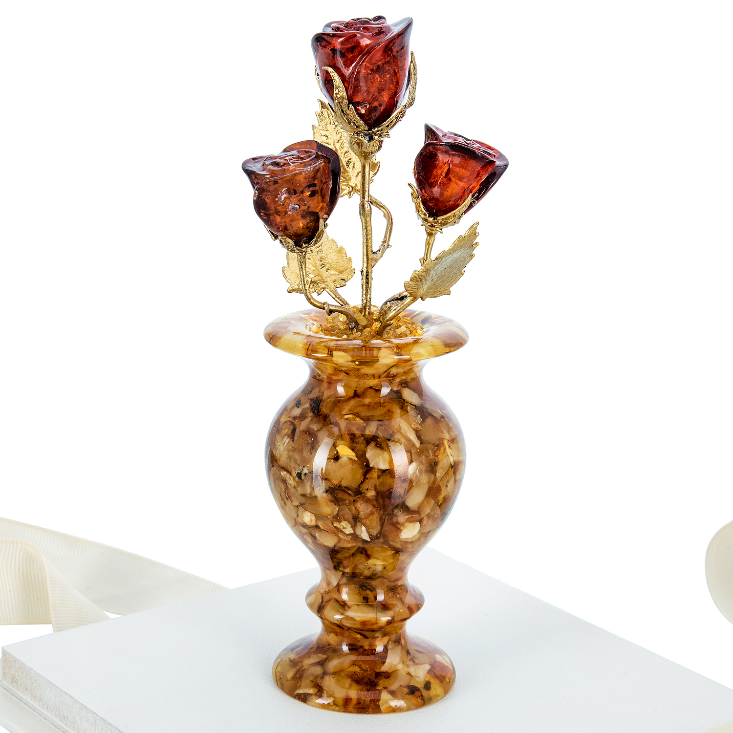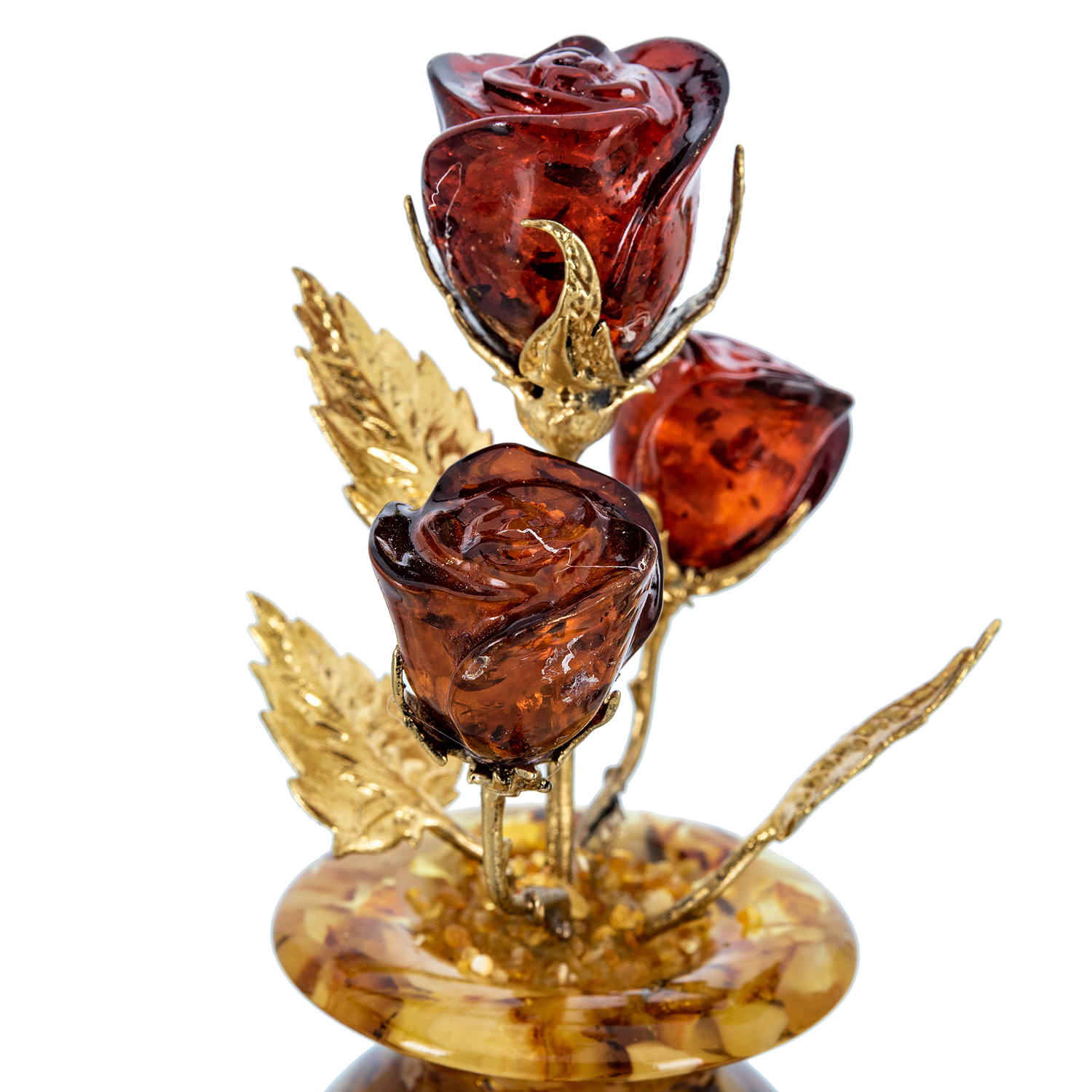 Янтарная композиция "Цветочная ваза. Три бутона"