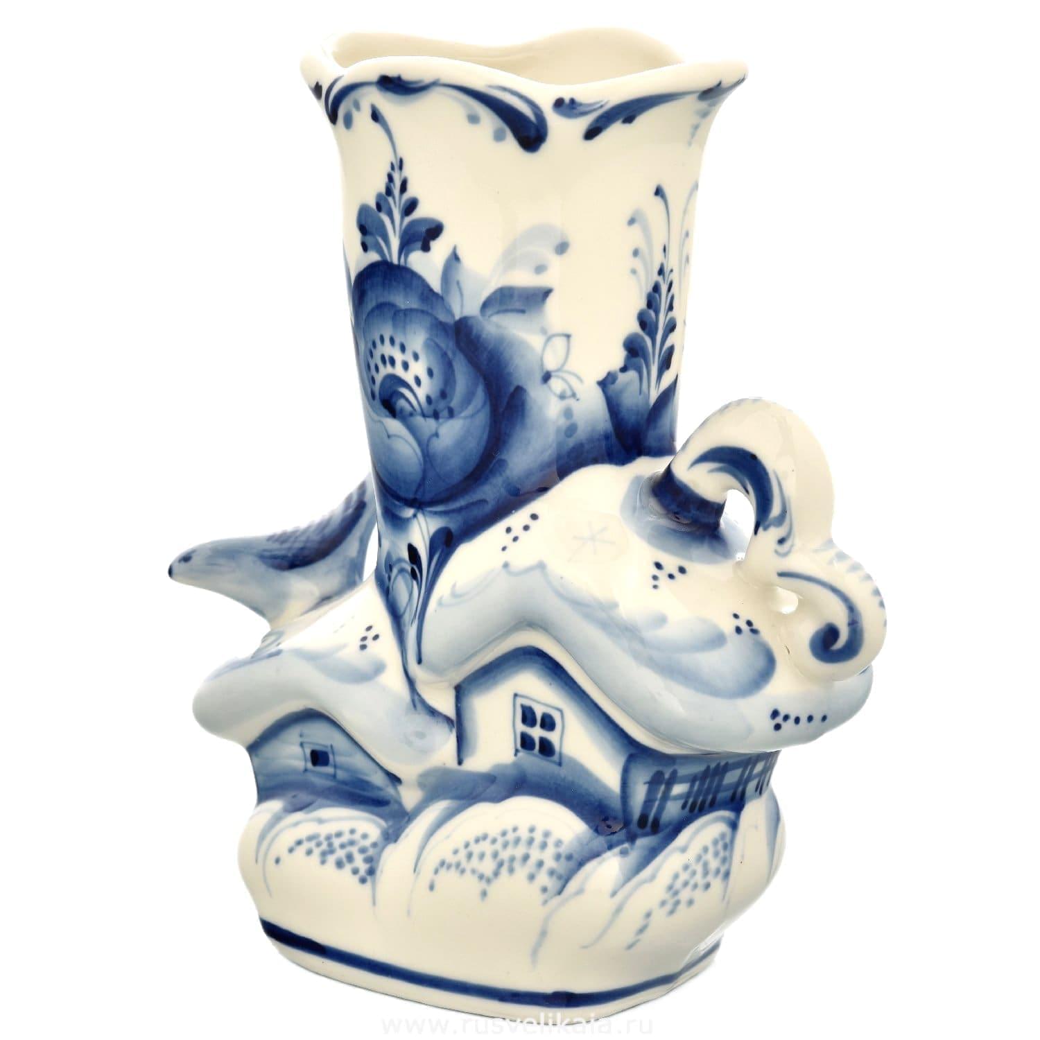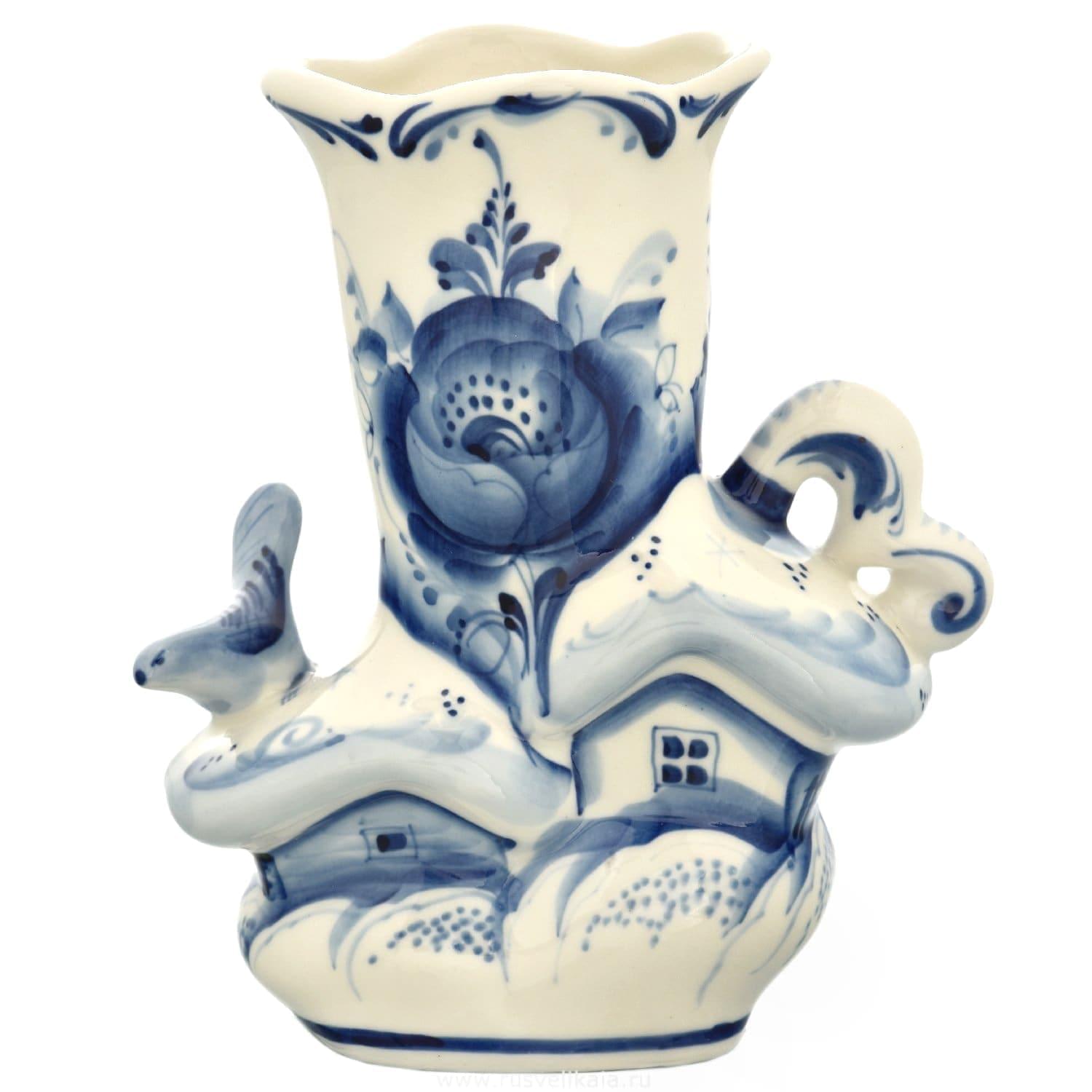 Ваза "Деревенька". Гжель