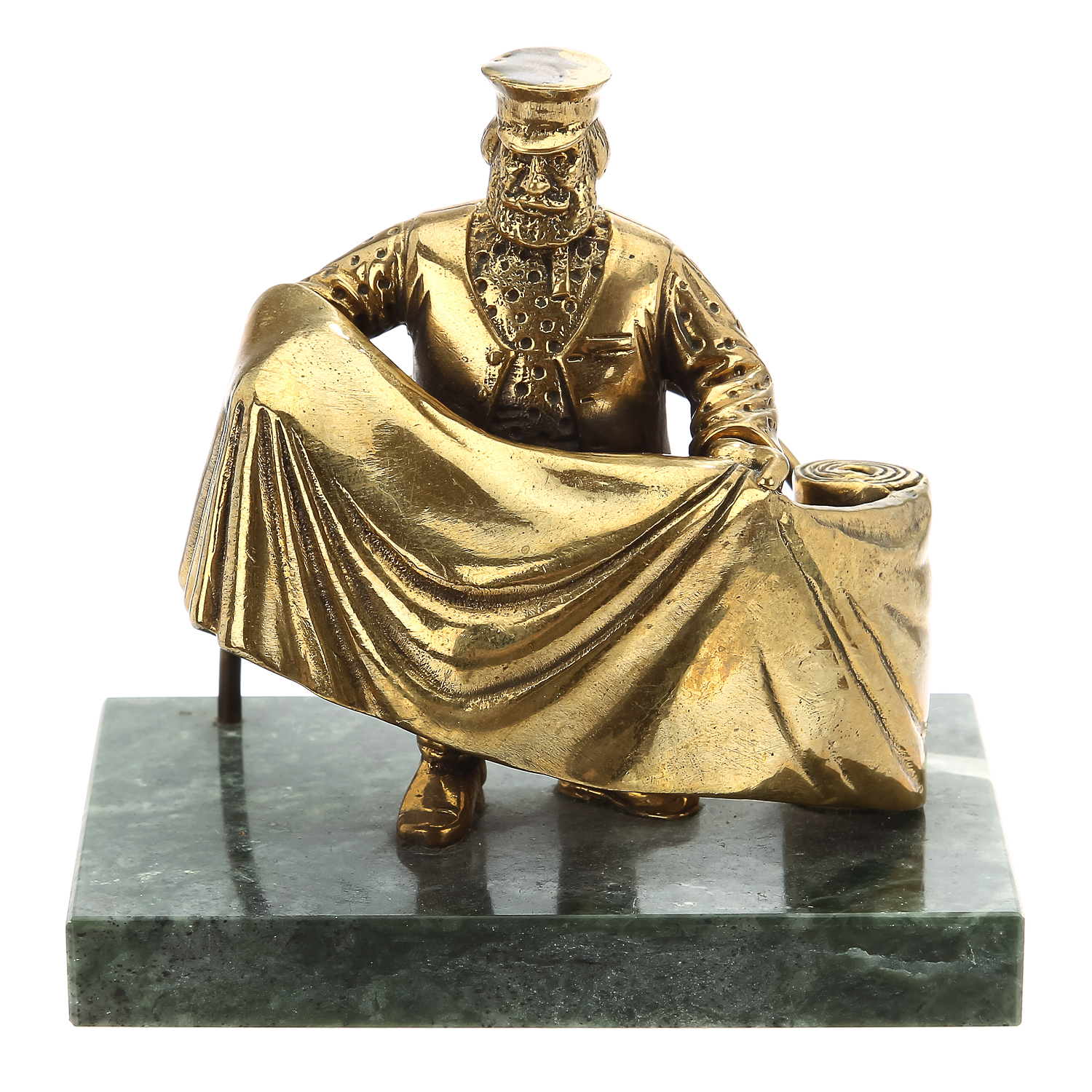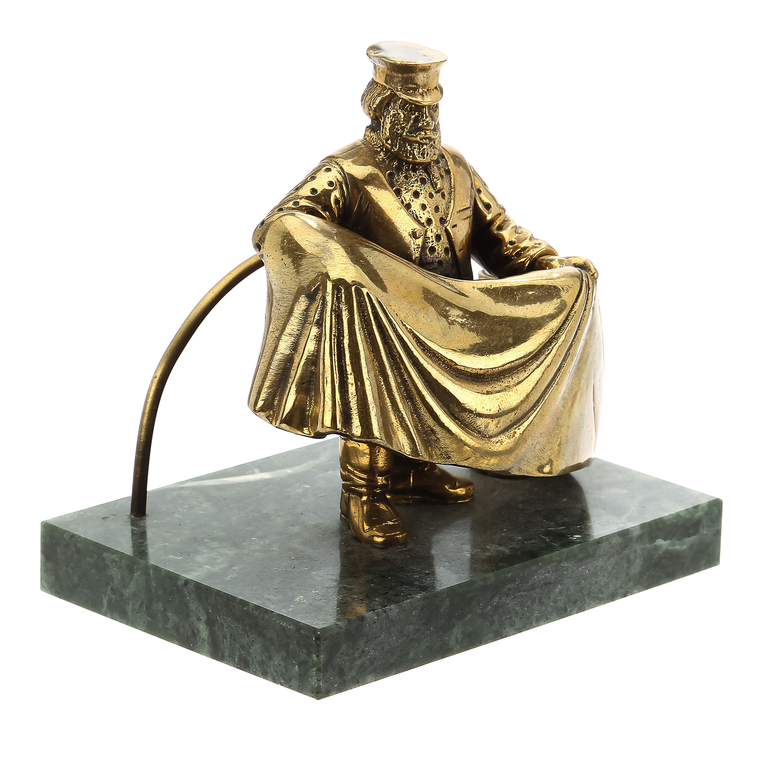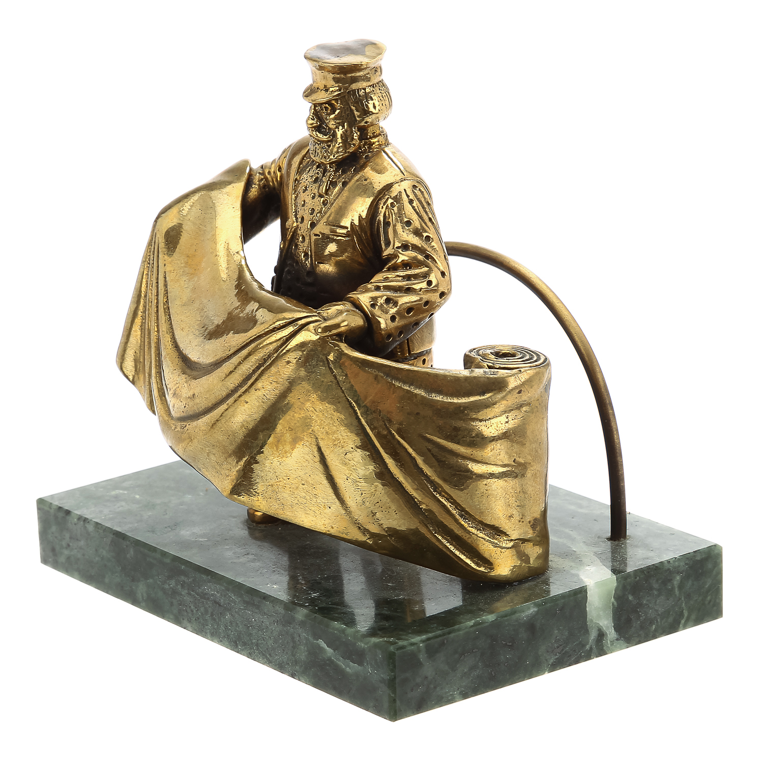 Настольная визитница выполнит практическую и эстетическую функцию. Изделие из натурального камня декорировано бронзовой скульптурой в виде текстильщика.