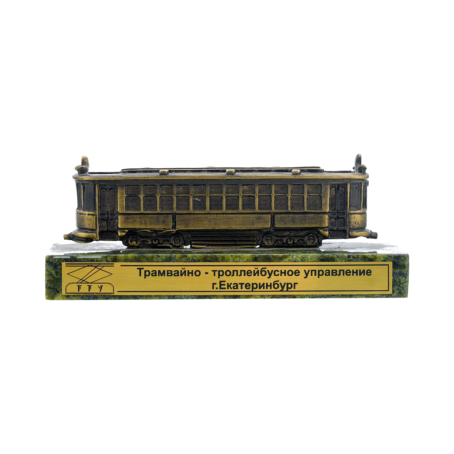 Русские подарки и сувениры → Настольные принадлежности → Визитницы → Настольная визитница из бронзы и змеевика "Трамвайчик"