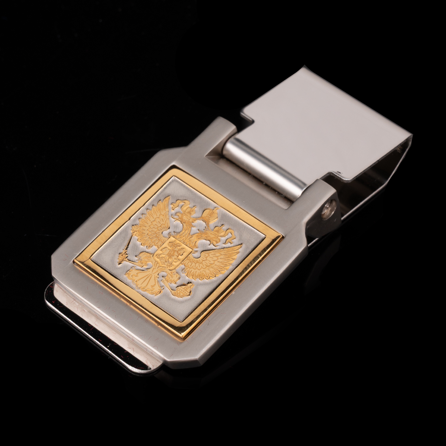 Зажим для денег "Герб РФ". Златоуст.Материалы: латунь, никель, золото 999,9*.