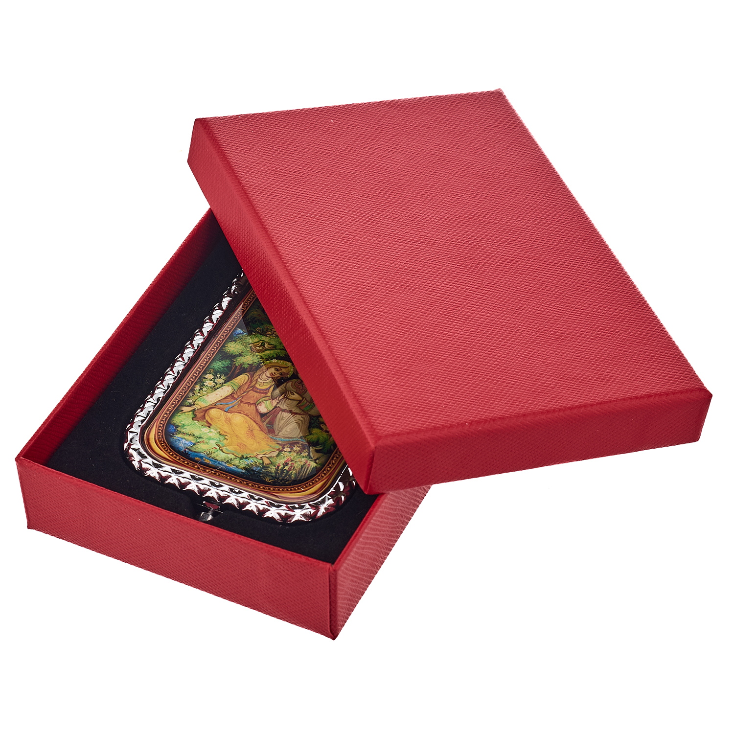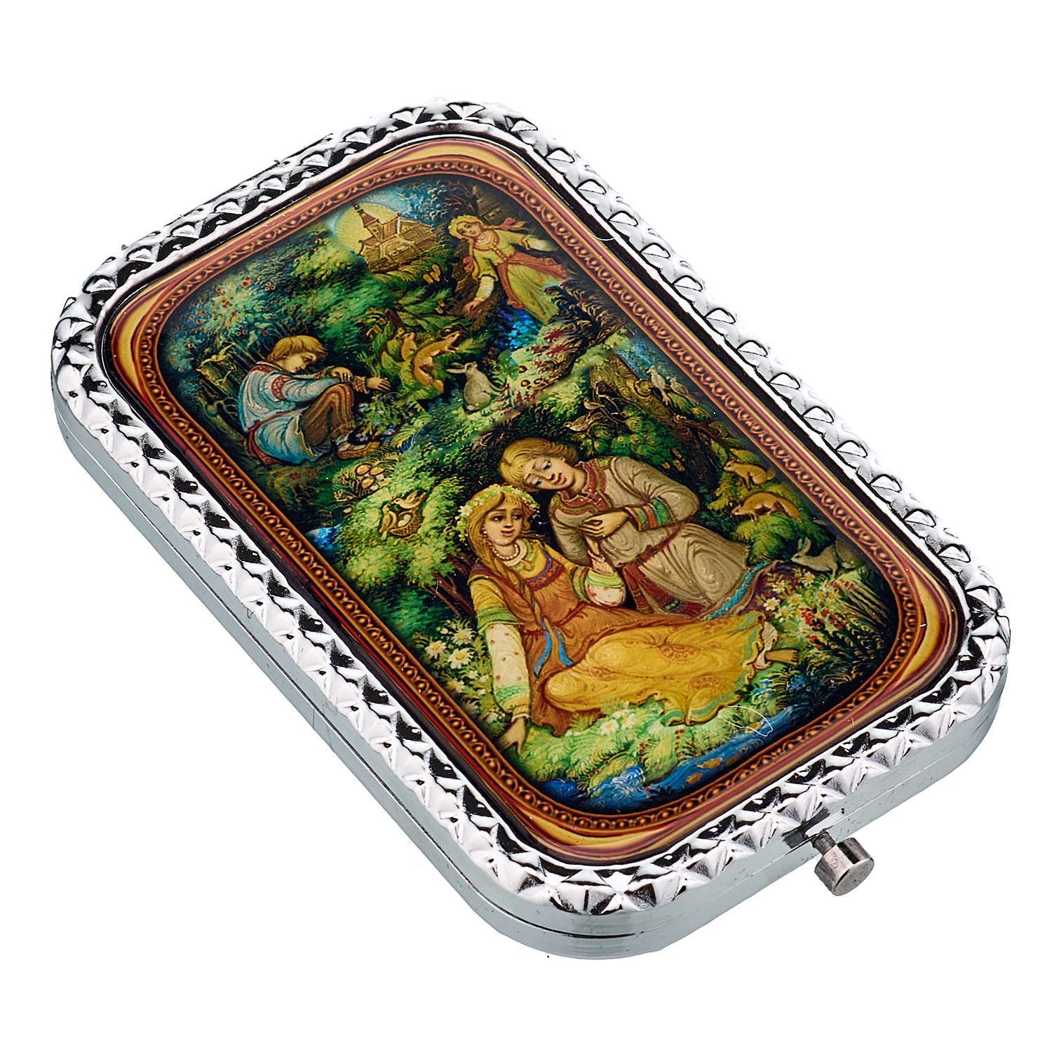 Сувенирное карманное зеркало с сюжетом.Материалы: металл, стекло.