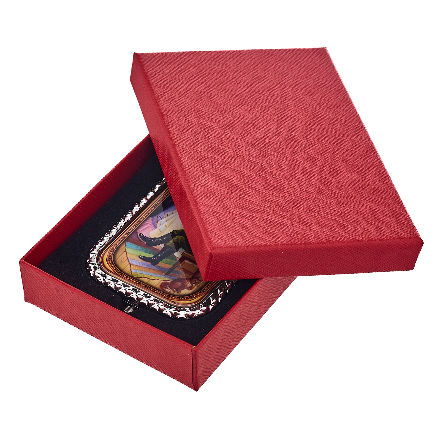 Сувенирное карманное зеркало с сюжетом.Материалы: металл, стекло.