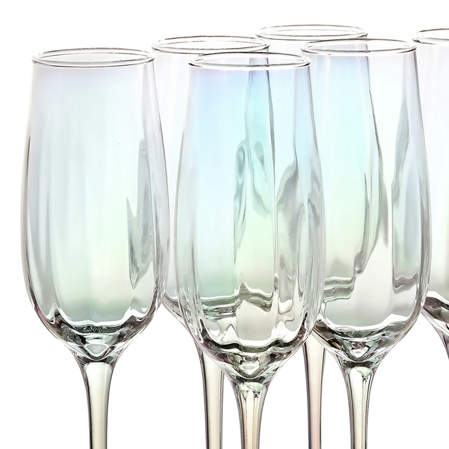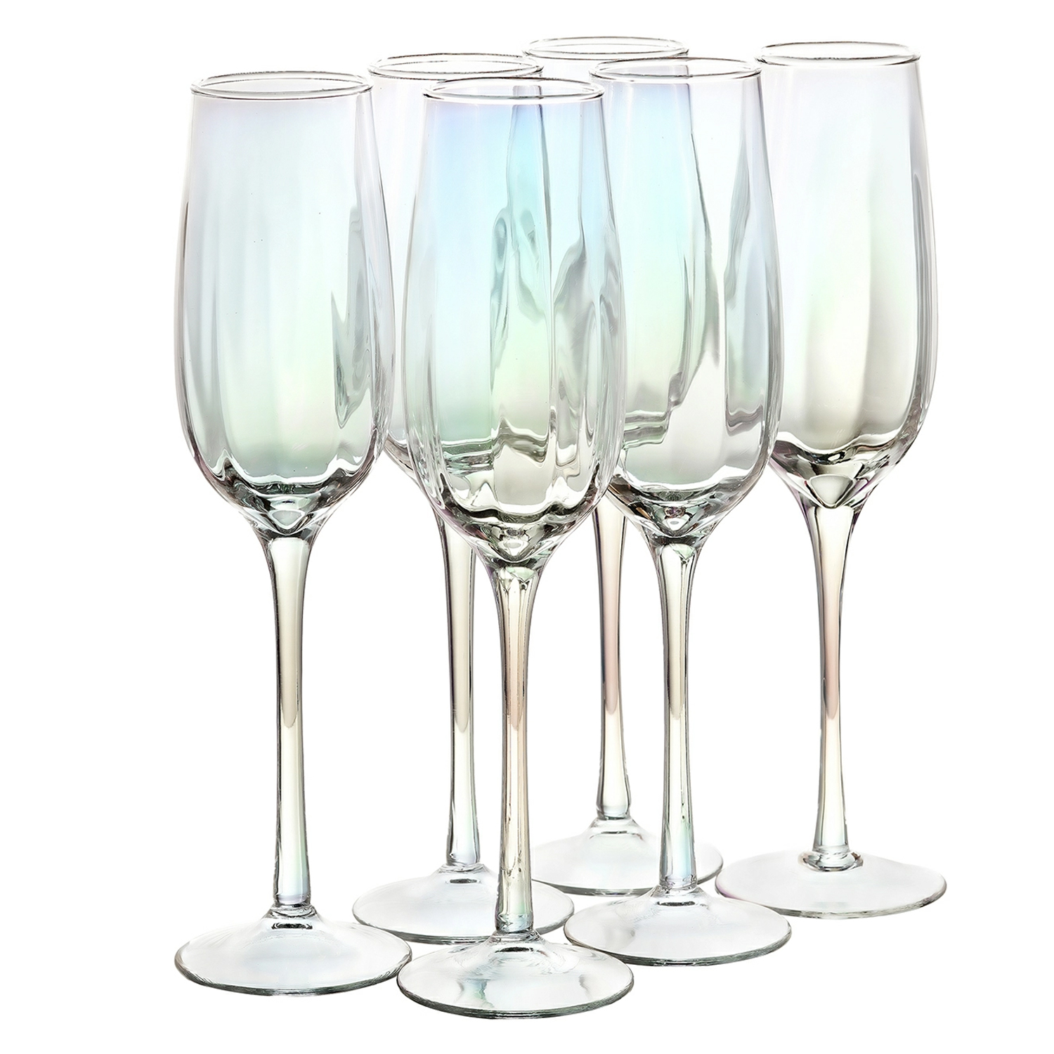 Набор из шести бокалов для шампанского. Бокалы изготовлены из богемского стекла с радужным напылением.