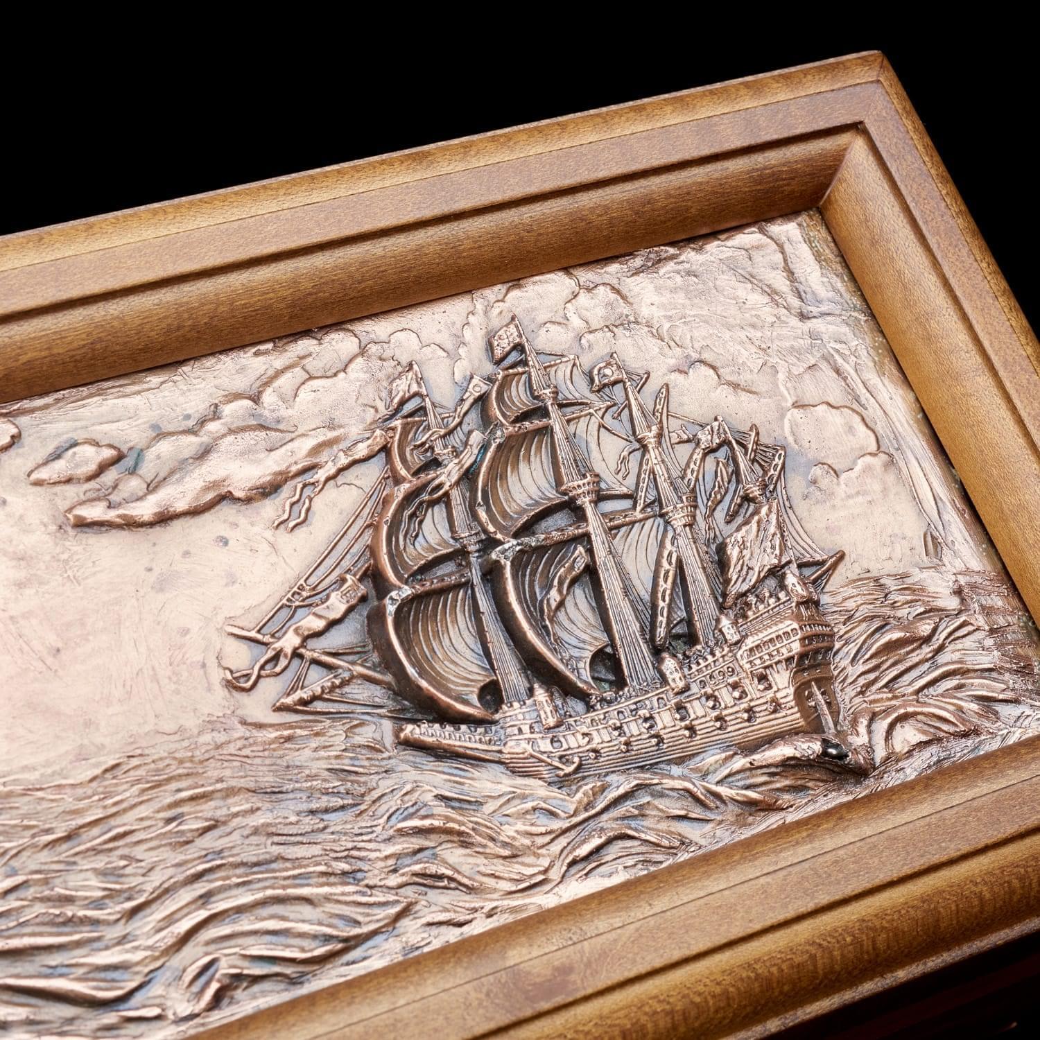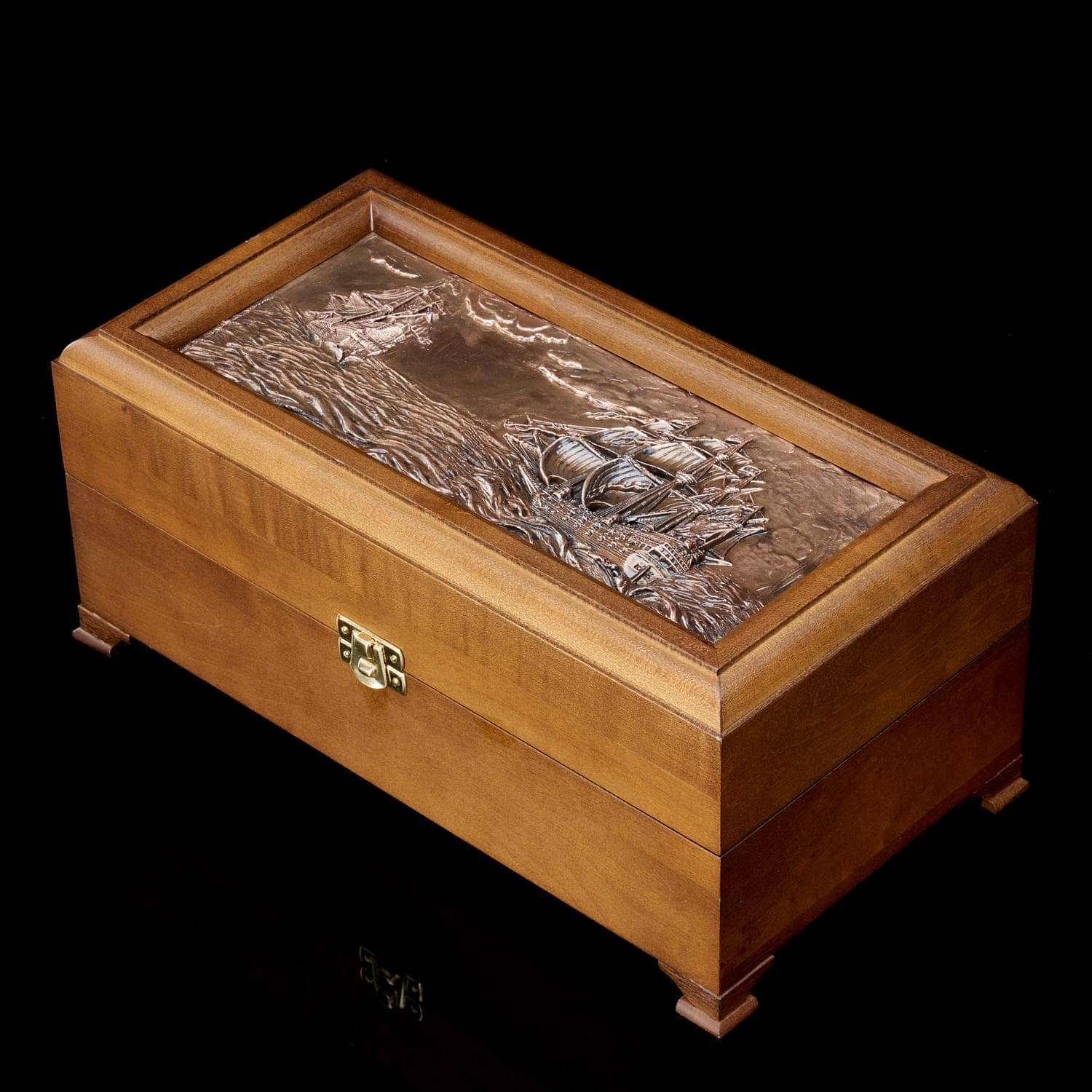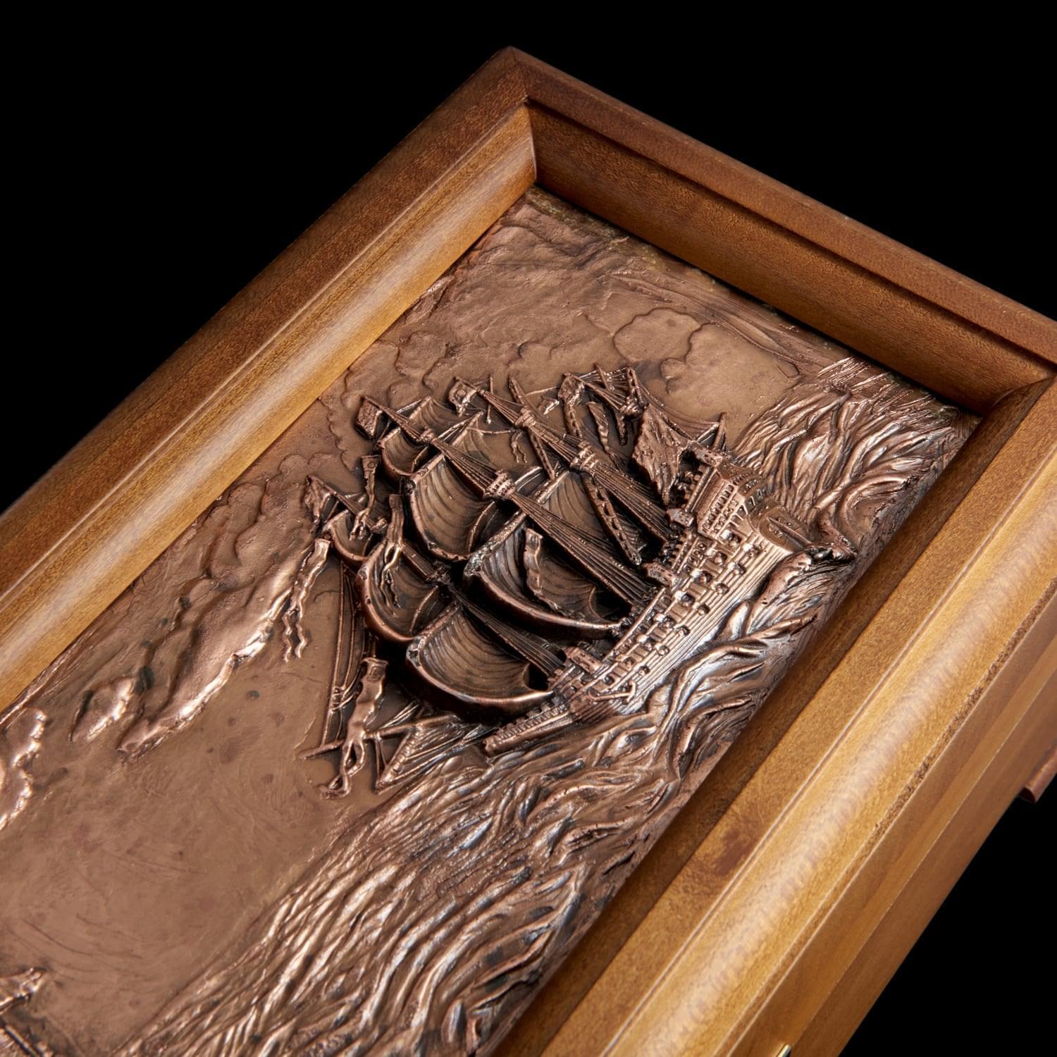 Кубок из латуни и меди "Фрегат" в подарочной деревянной шкатулке