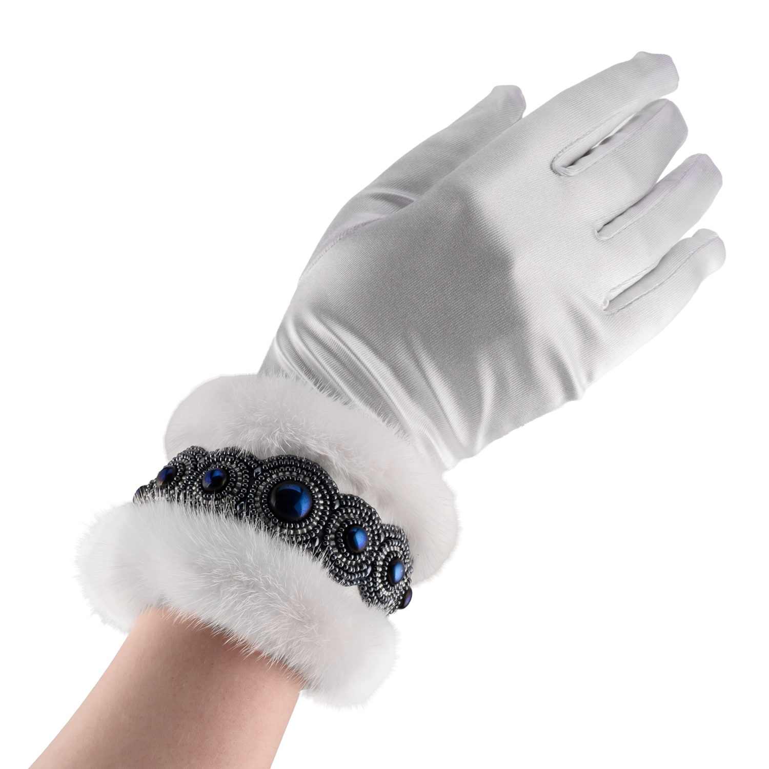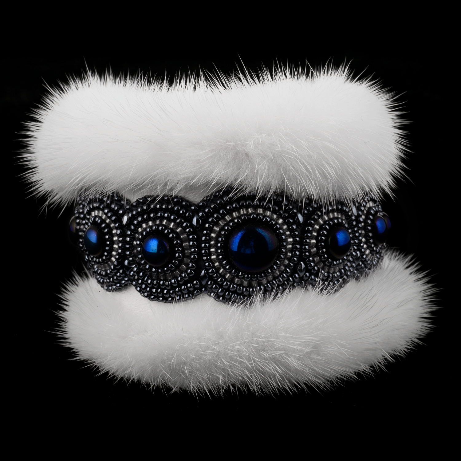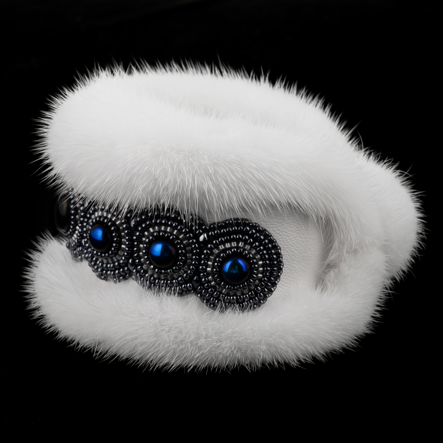 Браслет из бисера и меха белой норки.Размер: 100х100х75 мм
