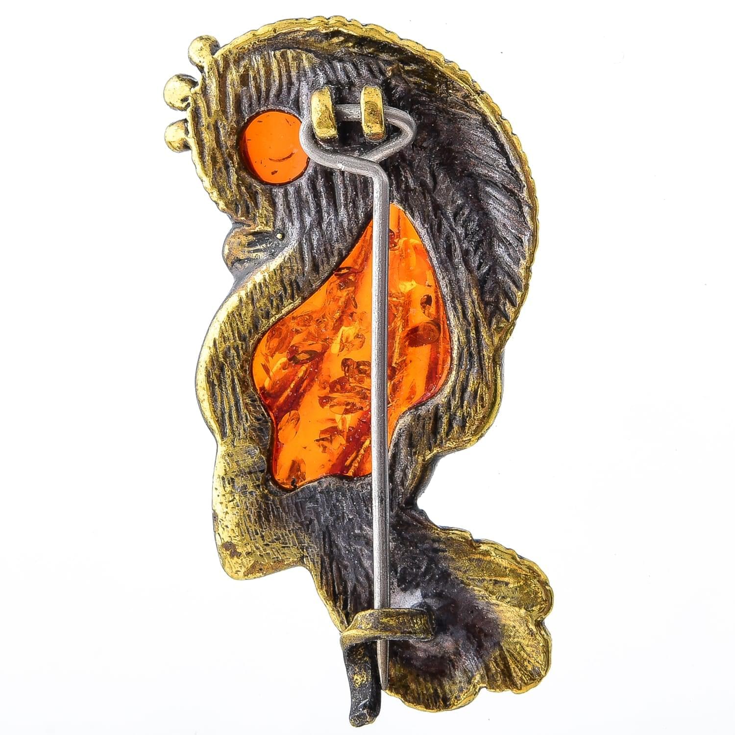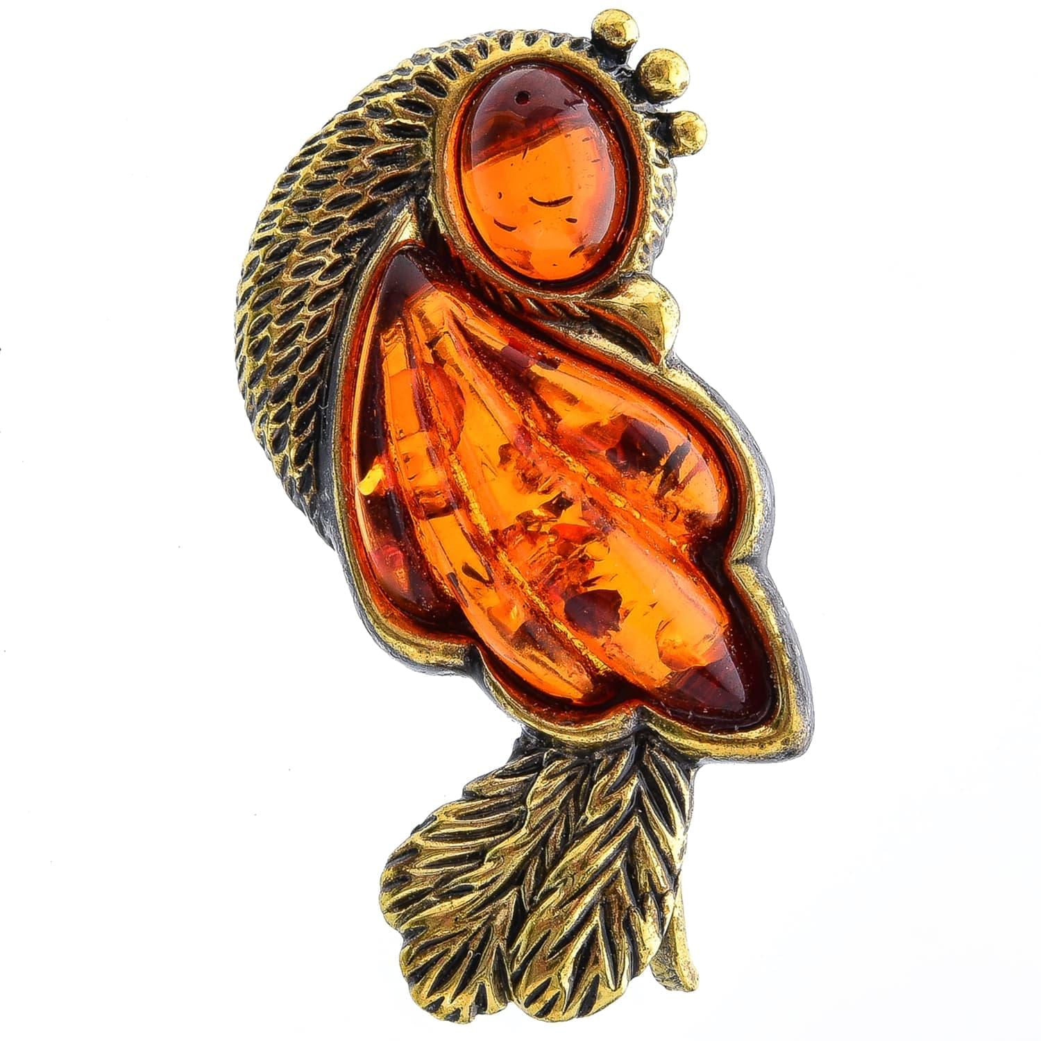 Брошь с янтарной вставкой "Птичка" (коньячный)
