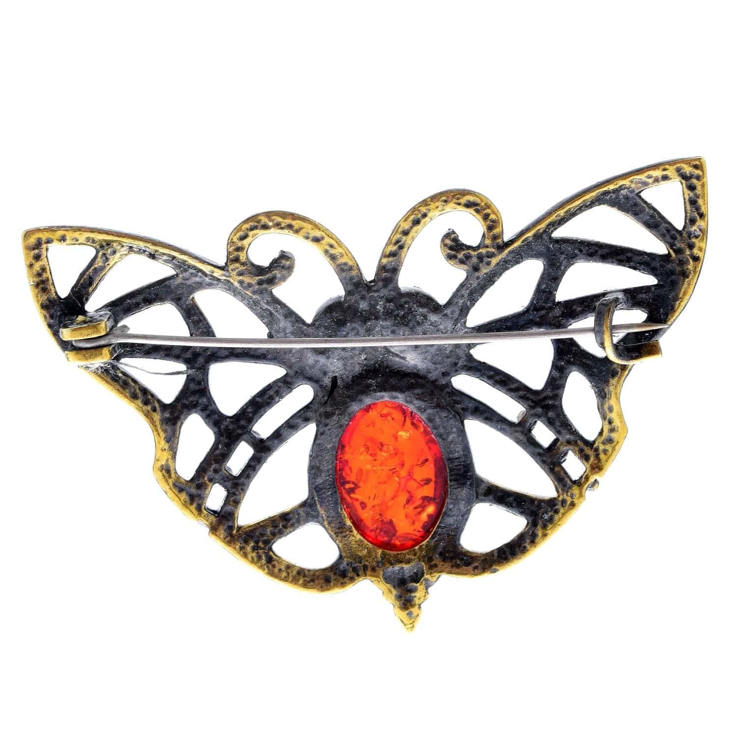 Брошь с янтарем "Мотылек Ажурный". Коньячный