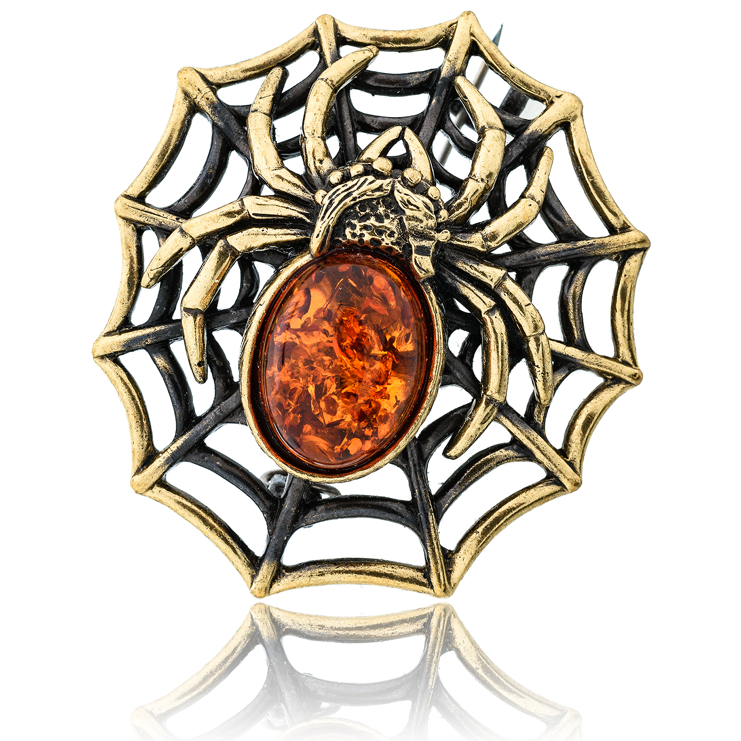 Брошь с янтарем "Паук Домовенок" (коньячный)