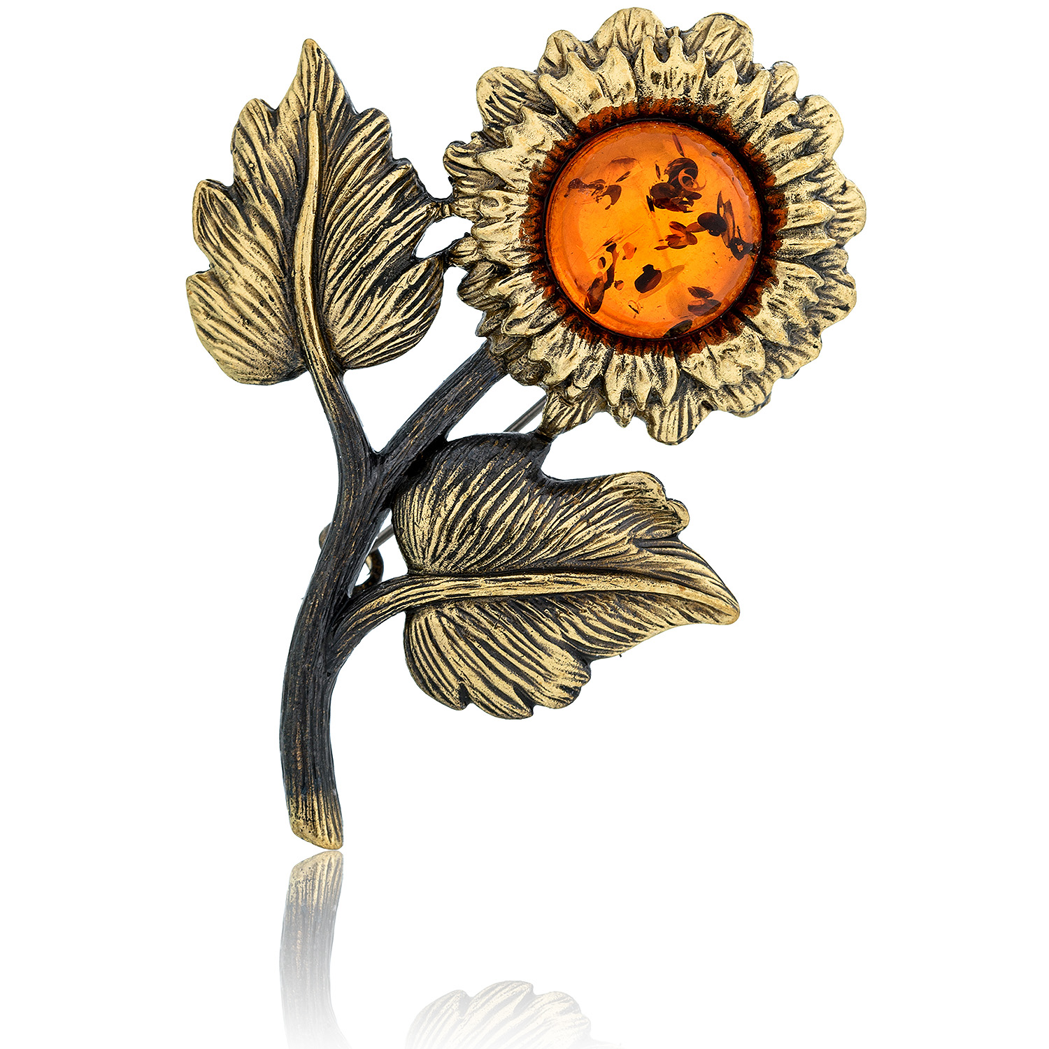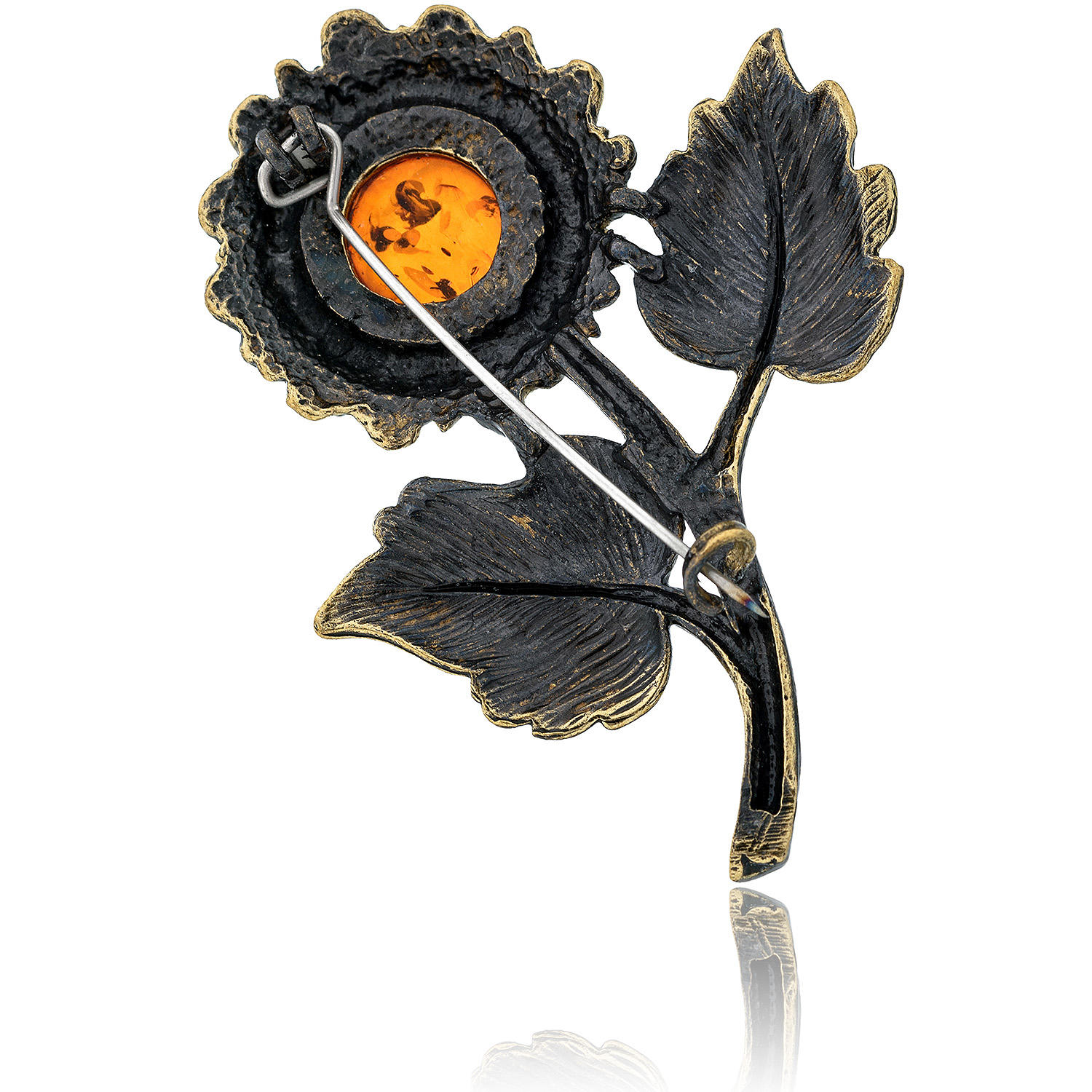 Брошь с янтарем "Подсолнух полевой" (коньячный)