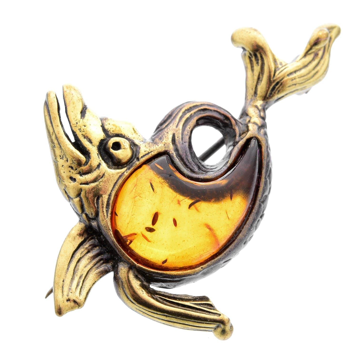 Брошь Дельфинчик (коньячный)