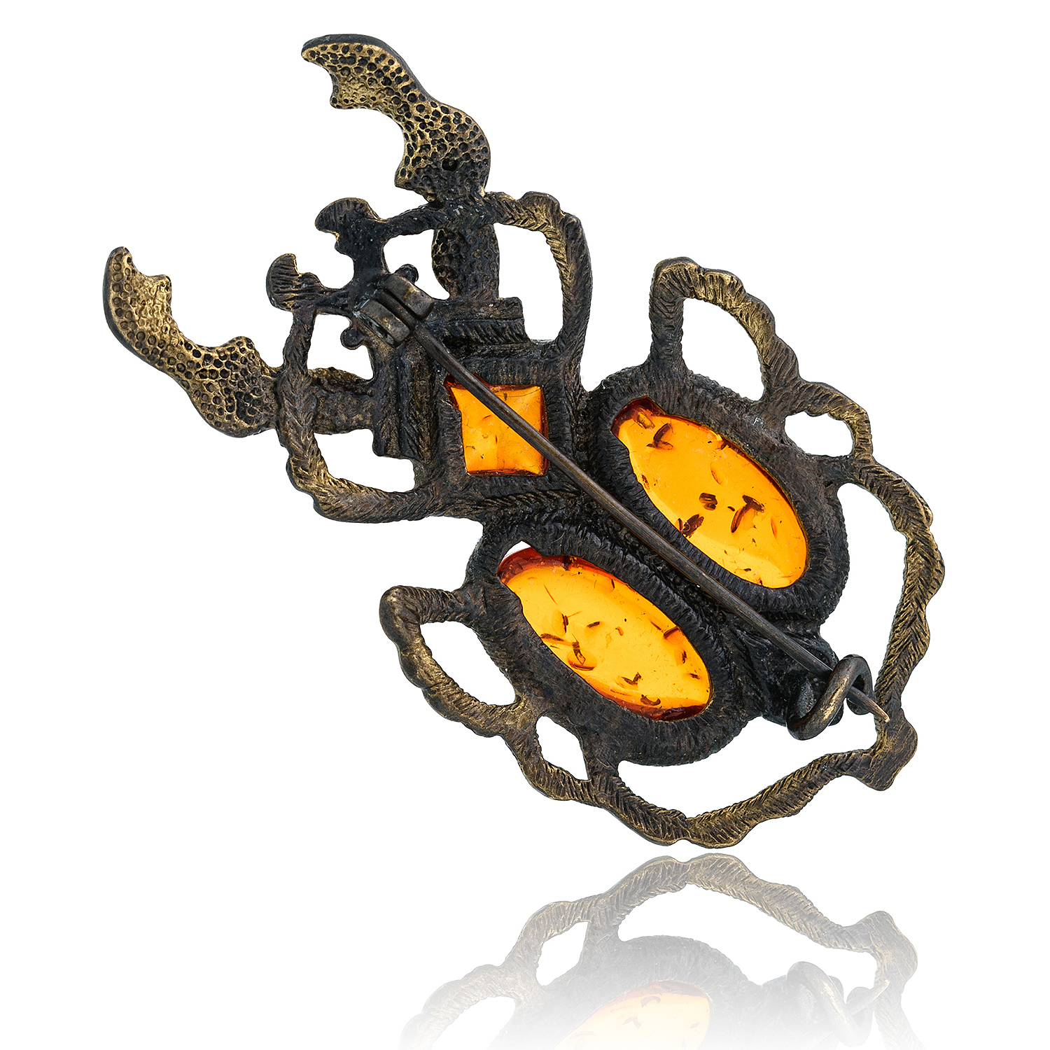 Брошь с янтарем "Жук Голиаф"