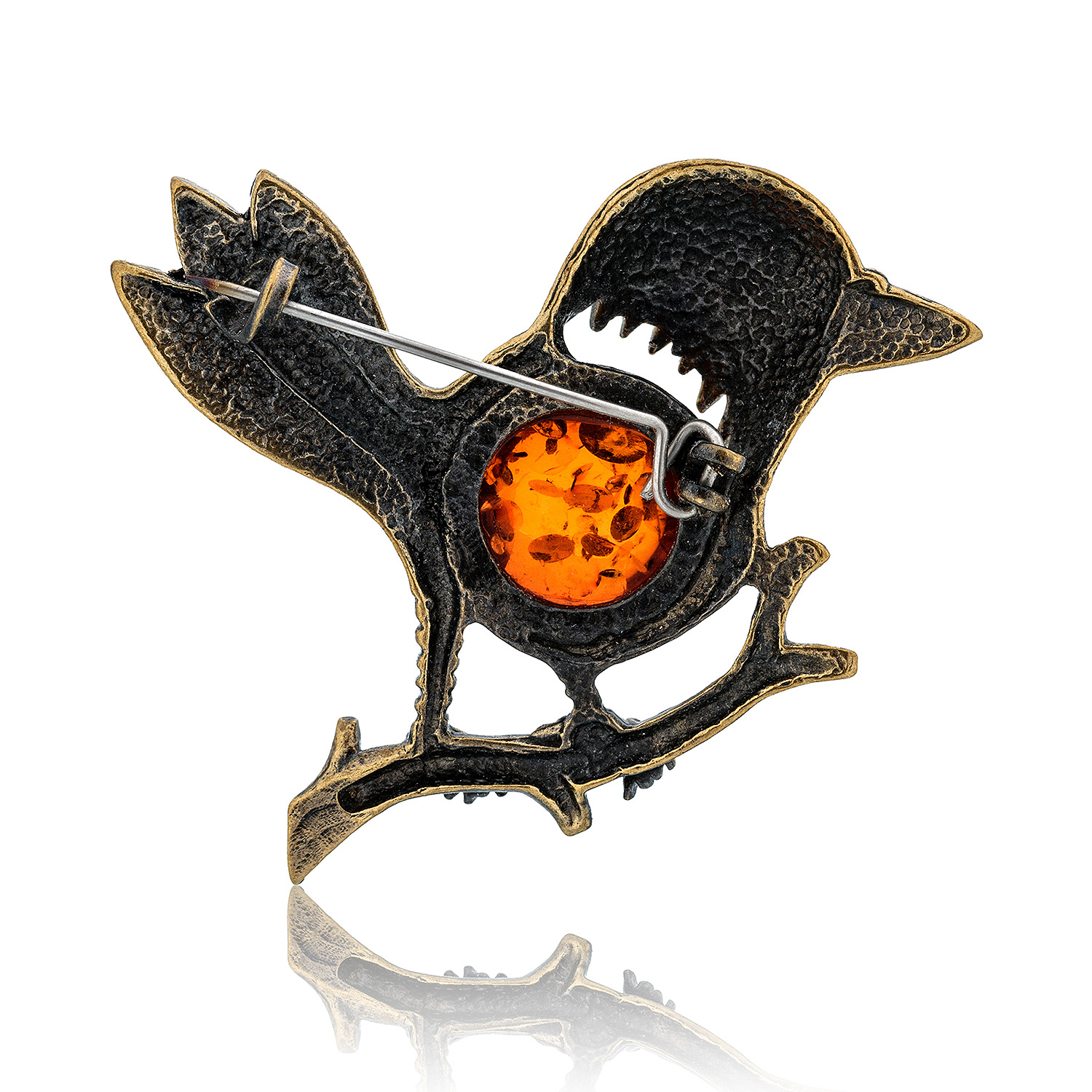 Брошь с янтарем "Ворона каркуша" (коньячный)