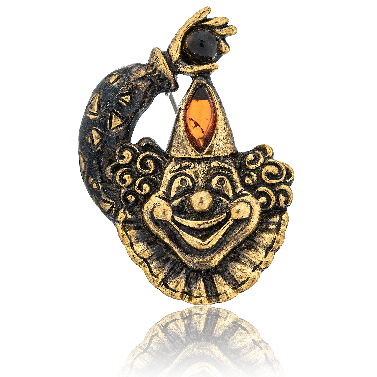 Брошь с янтарем "Клоун".Материалы: латунь, янтарь.