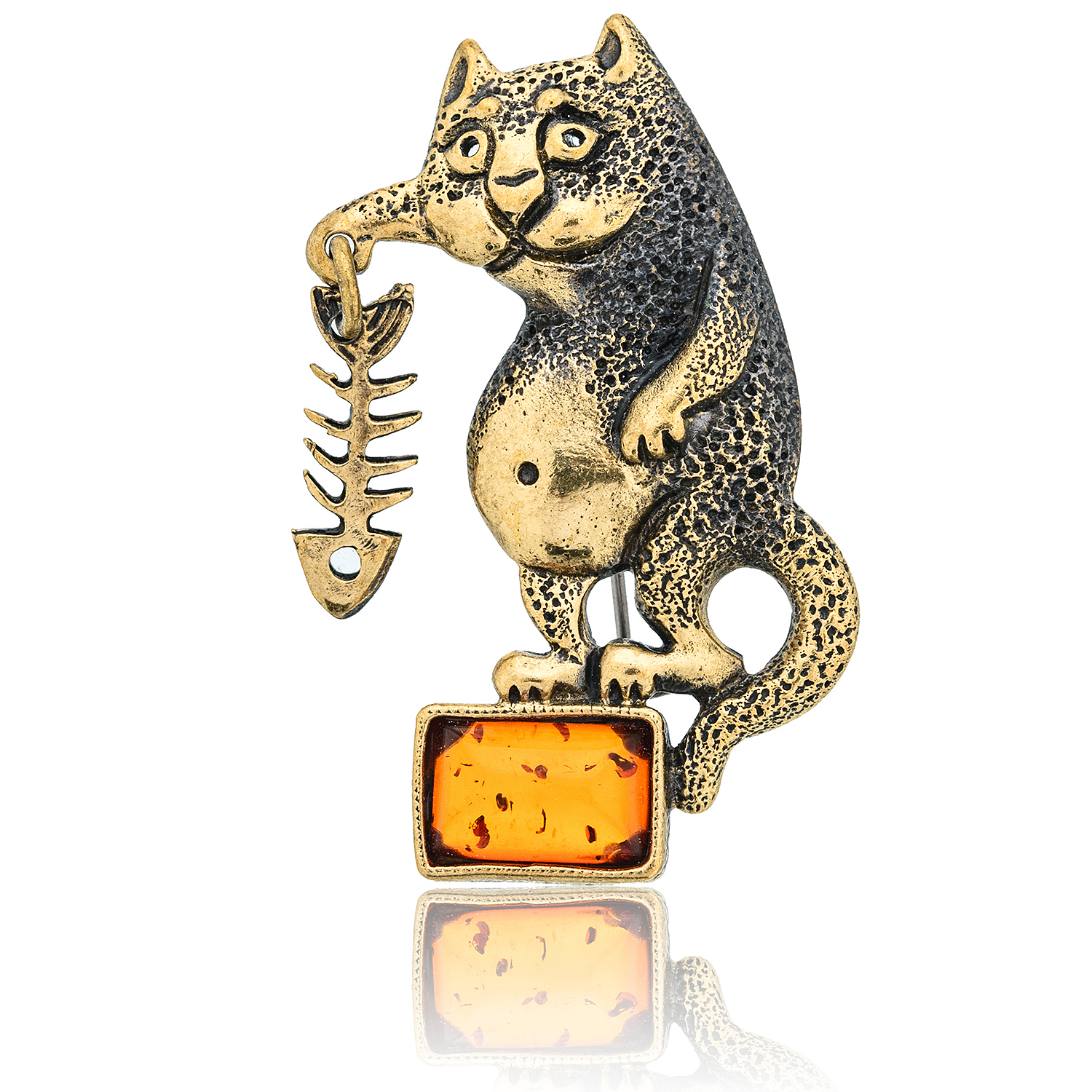 Брошь с янтарем "Сытый кот"