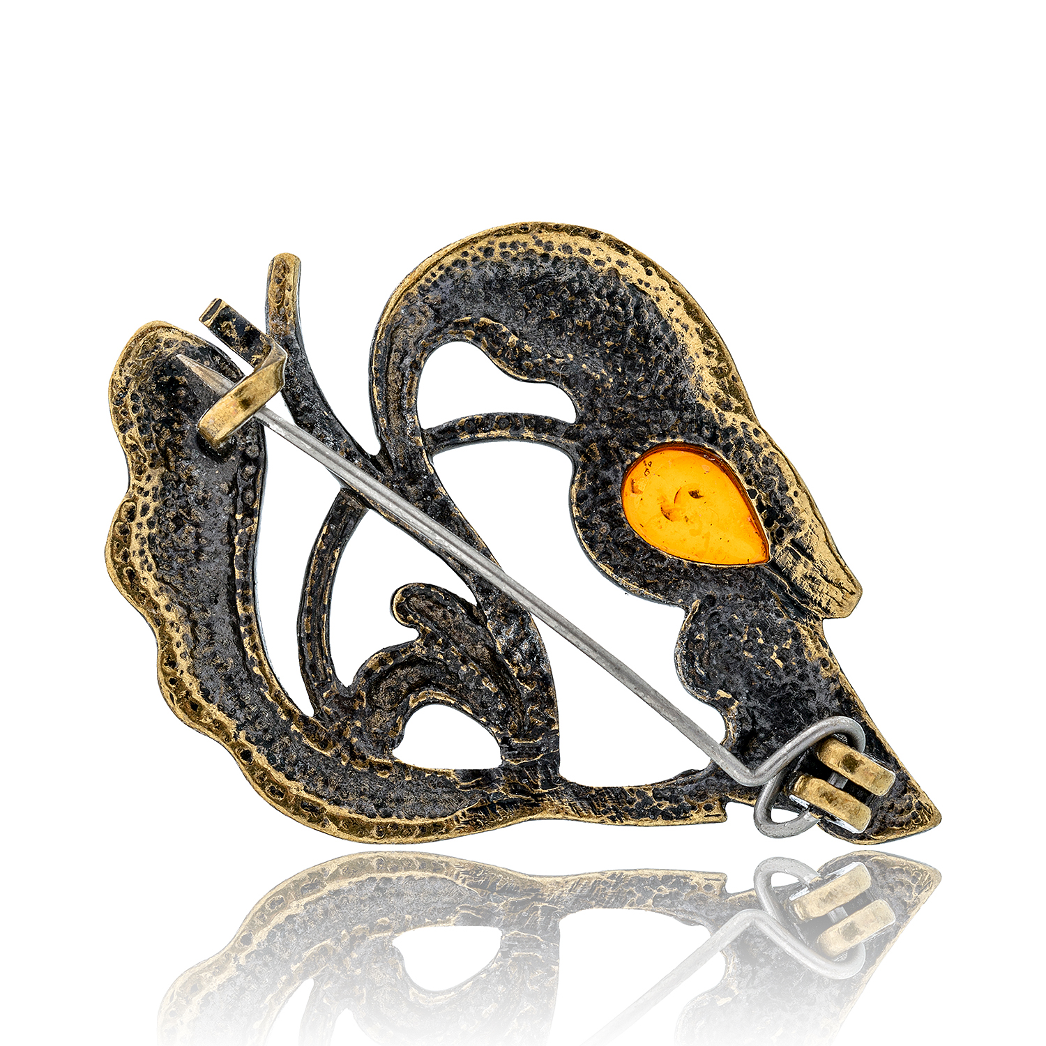 Брошь с янтарем "Тюльпан".Материалы: бронза, янтарь.