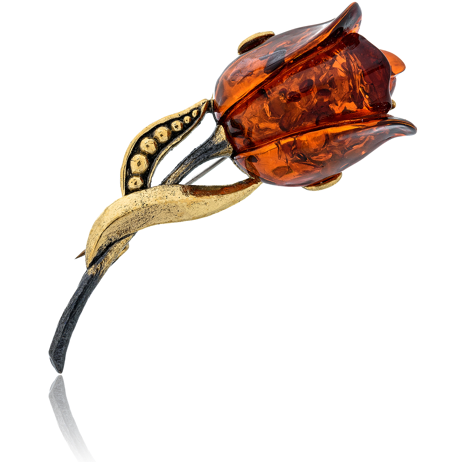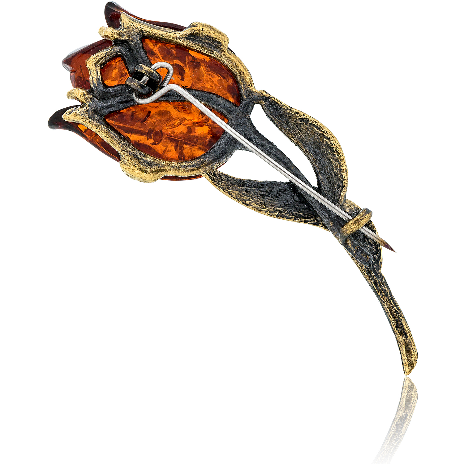Брошь с янтарем "Тюльпан"