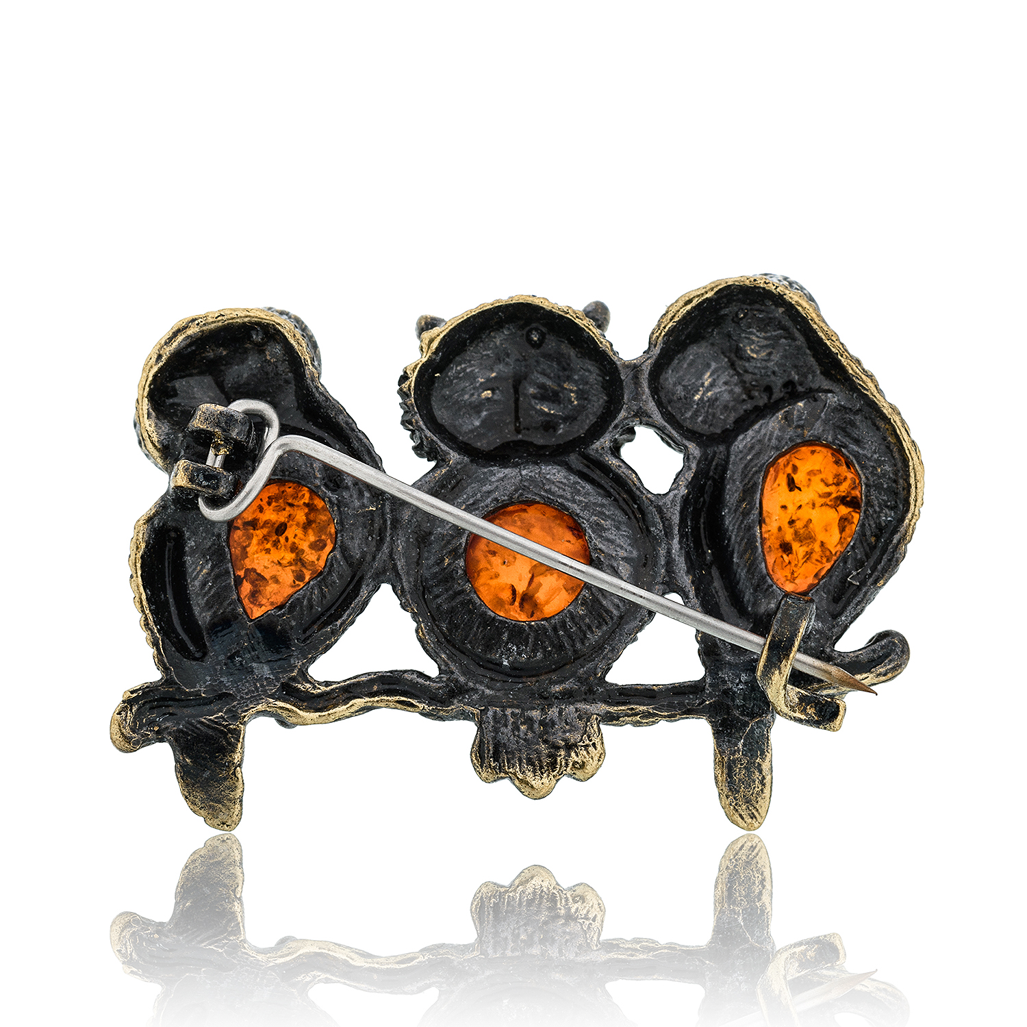Брошь с янтарем "Совушки"