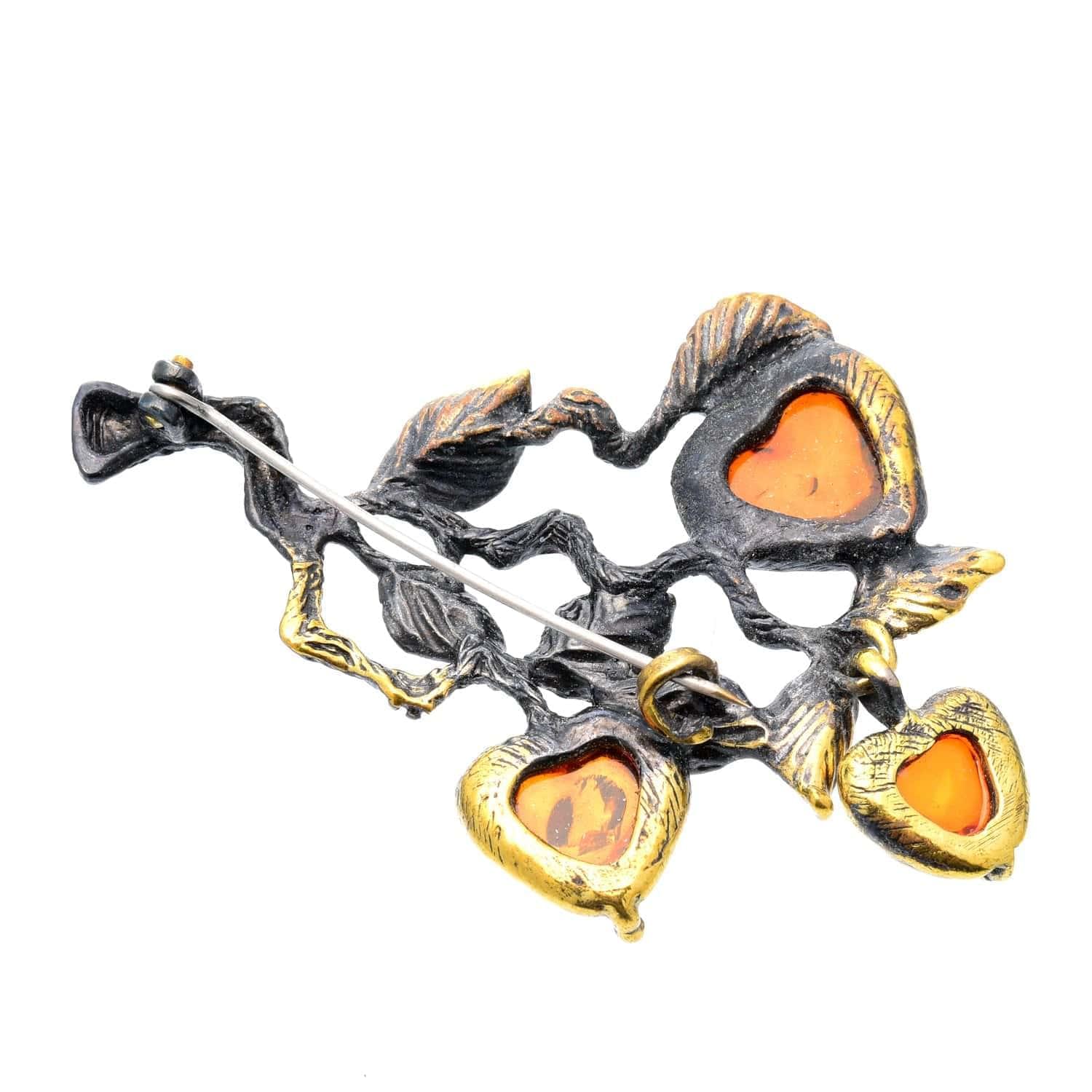 Брошь с янтарем "Яблочки на ветке". Коньячный