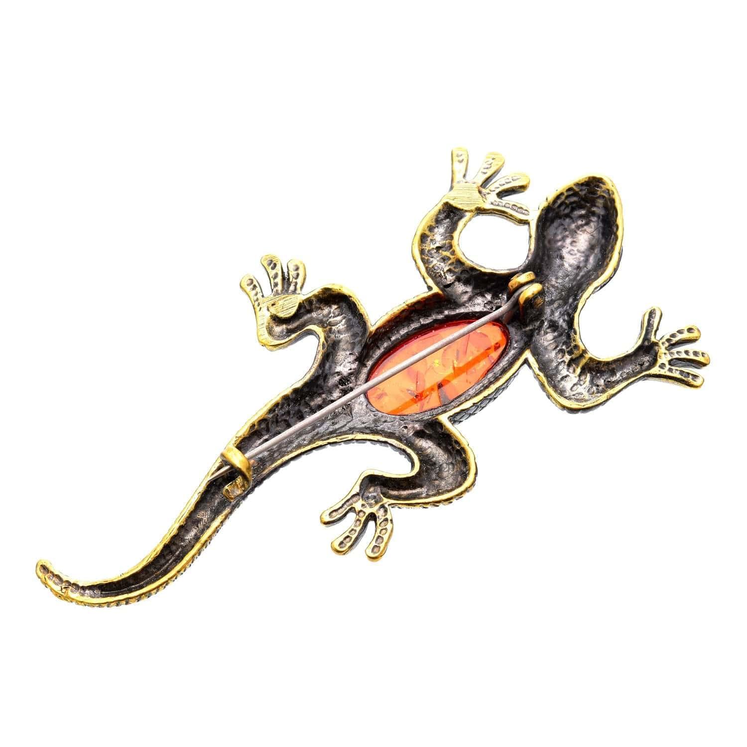 Брошь Ящерица большая (коньячный)