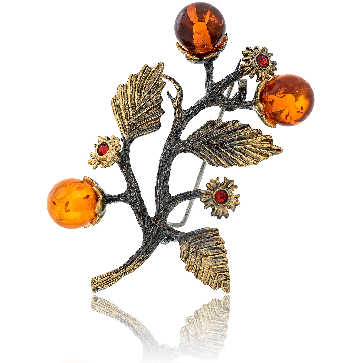 Брошь с янтарем "Веточка"