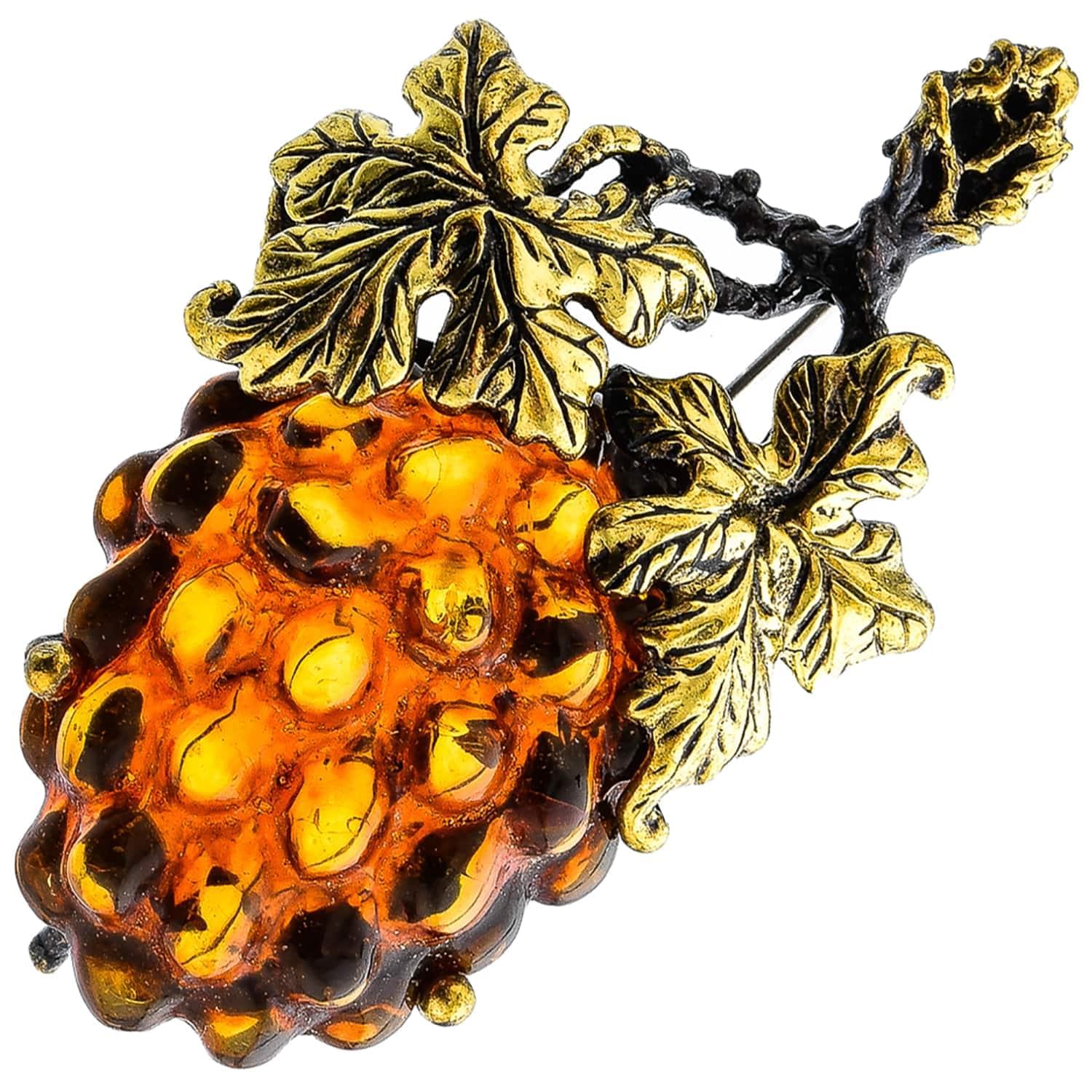 Брошь с янтарной вставкой "Виноград большой" (коньячный)
