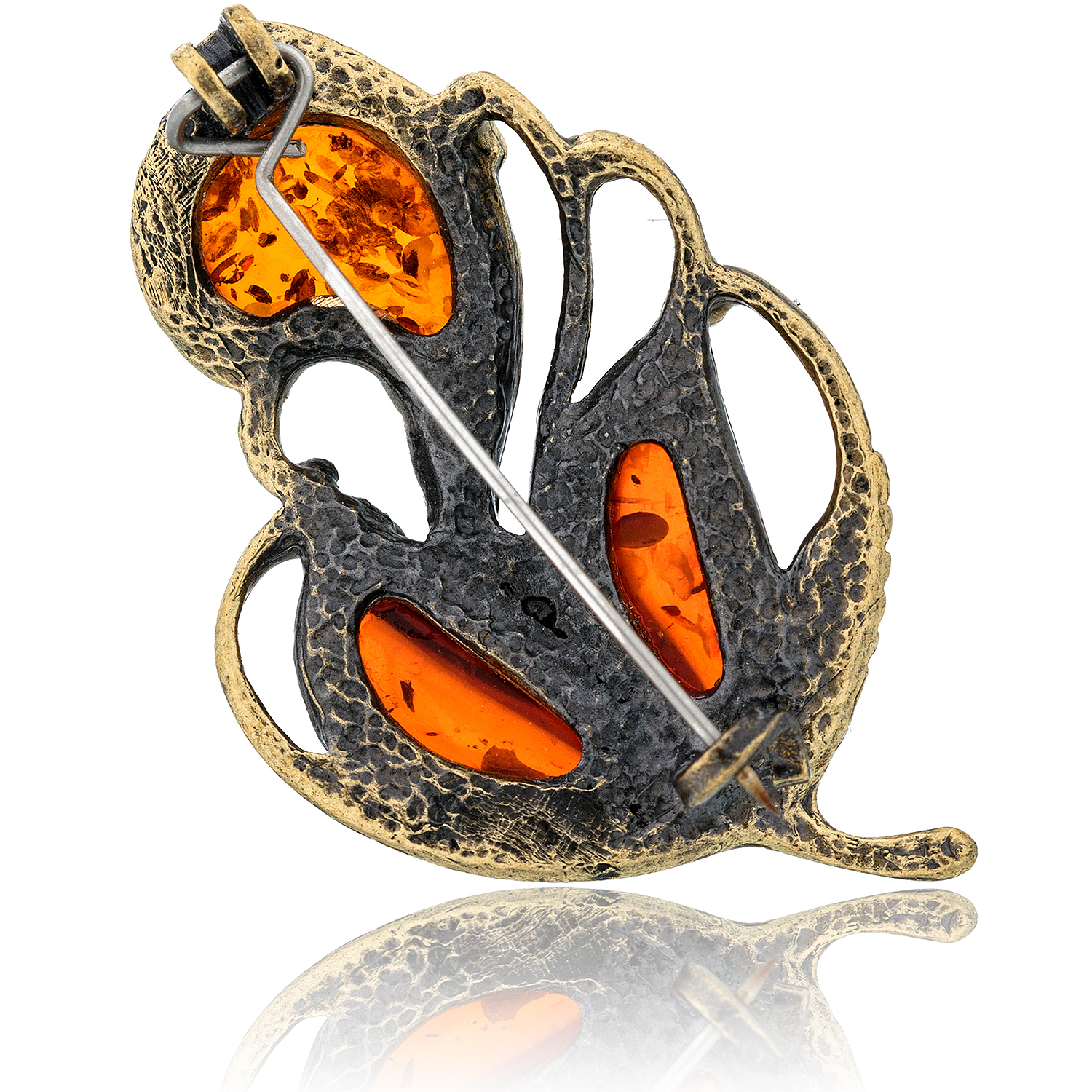 Брошь с янтарем "Винтажный букет".Материалы: бронза, янтарь.