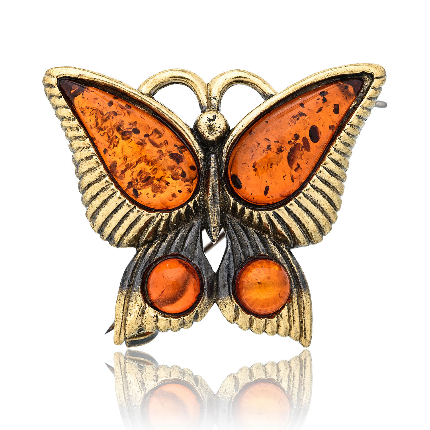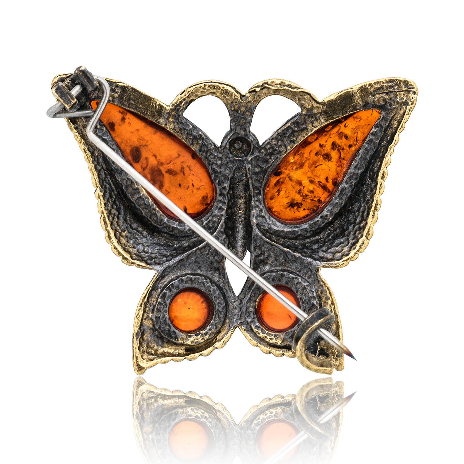 Брошь с янтарем "Бабочка Капустница".Материалы: латунь, янтарь.