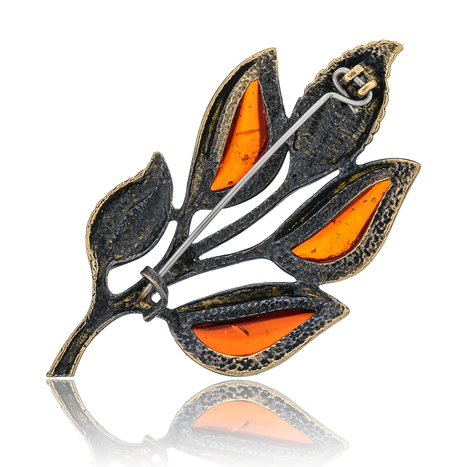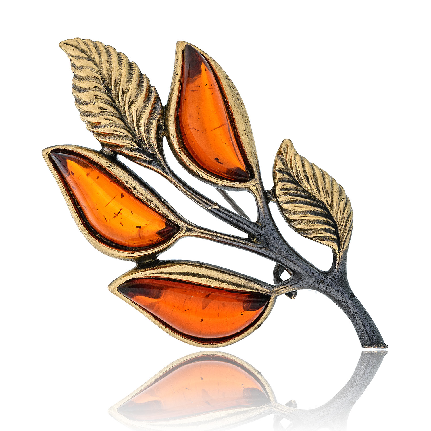 Брошь с янтарем "Веточка Осень" (коньячный)