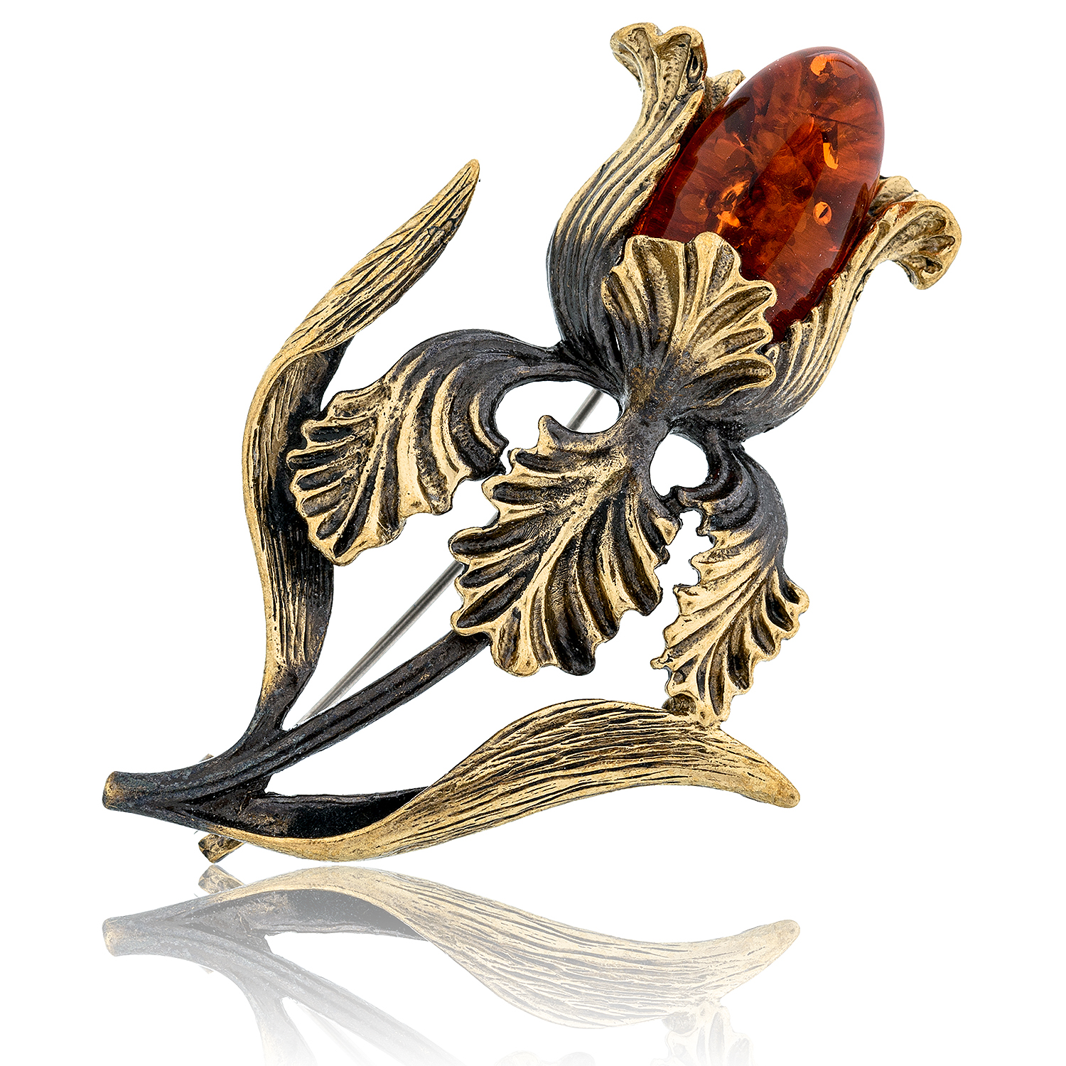 Брошь с янтарем "Ирис"