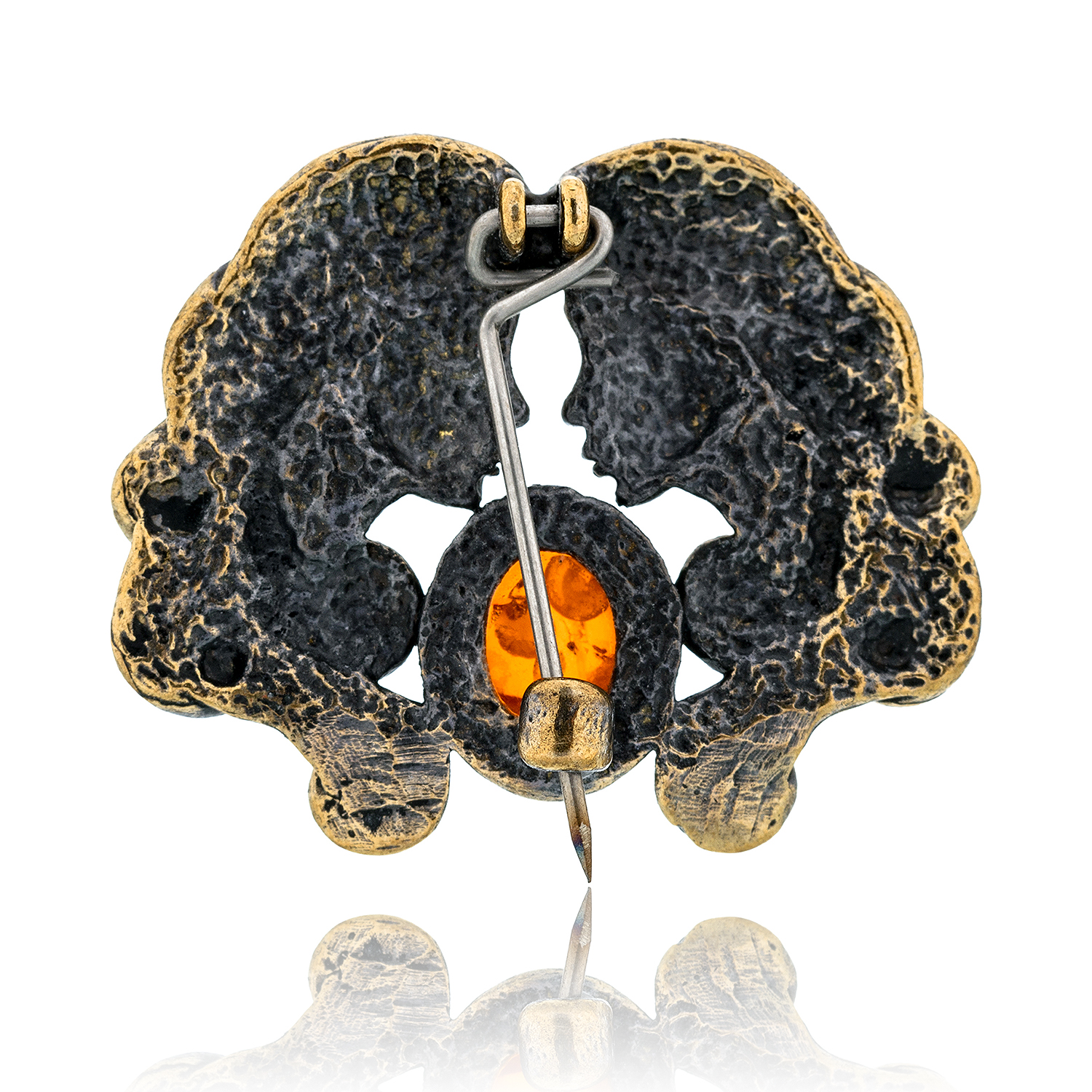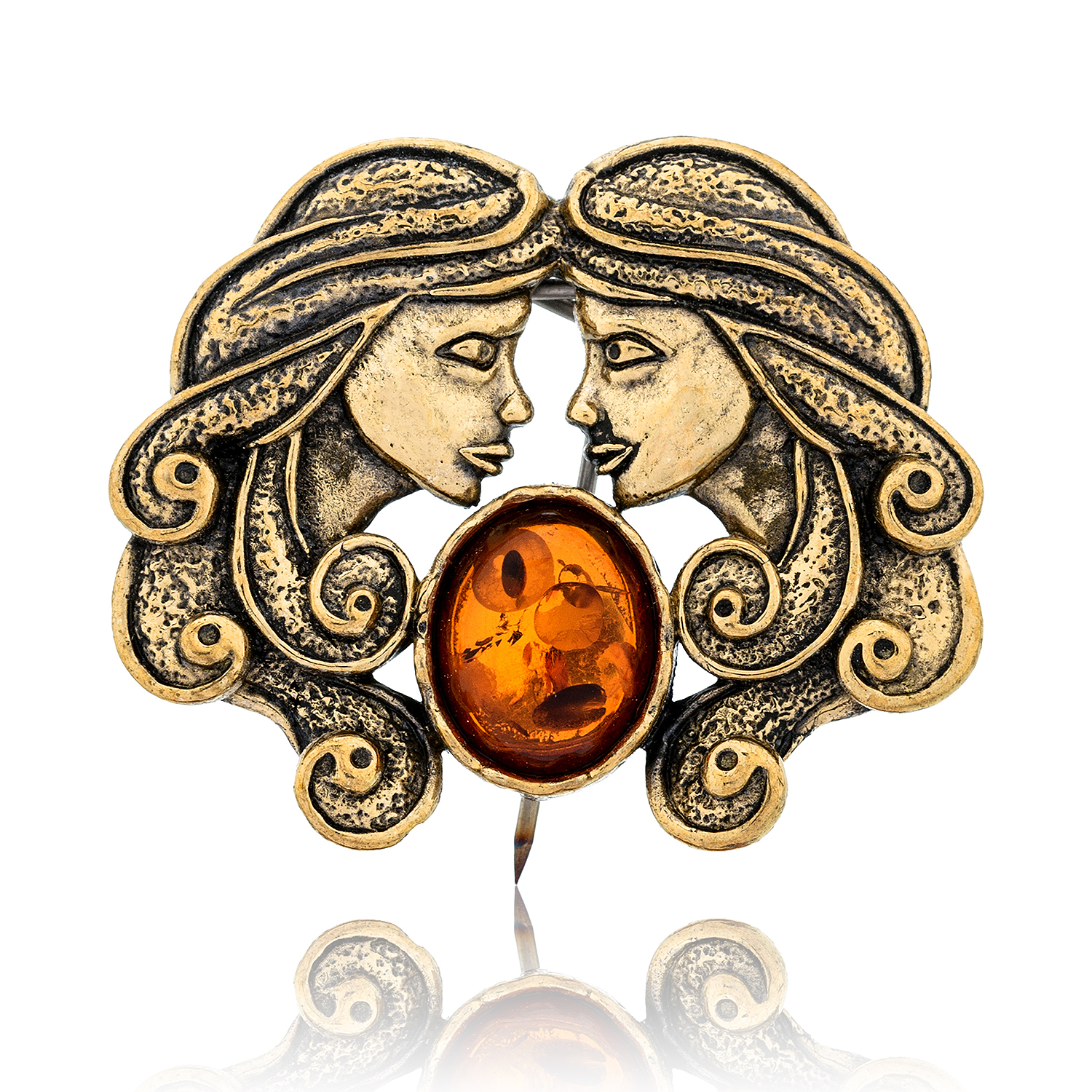 Брошь с янтарем "Знак зодиака Близнецы"