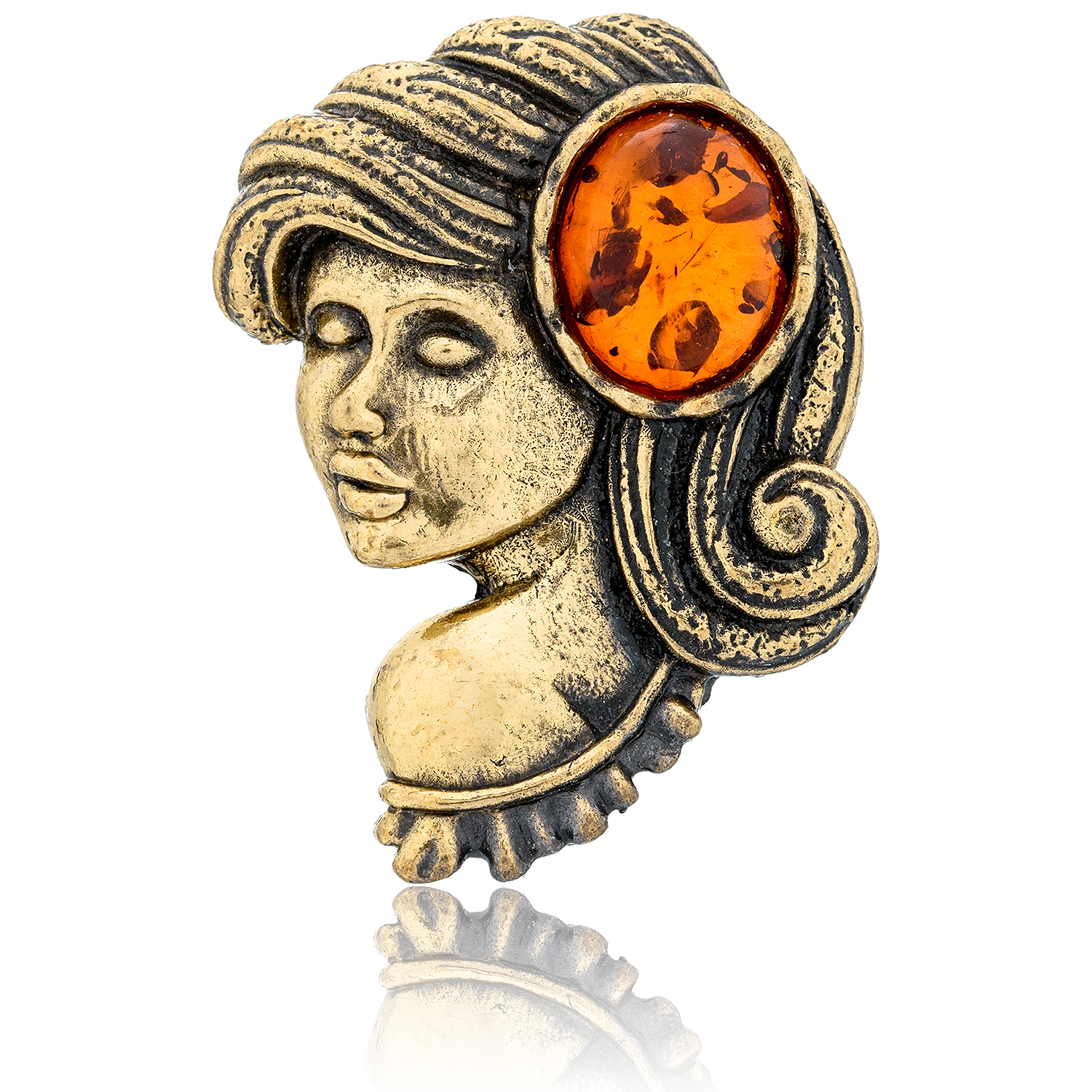Брошь с янтарем "Знак зодиака Дева"