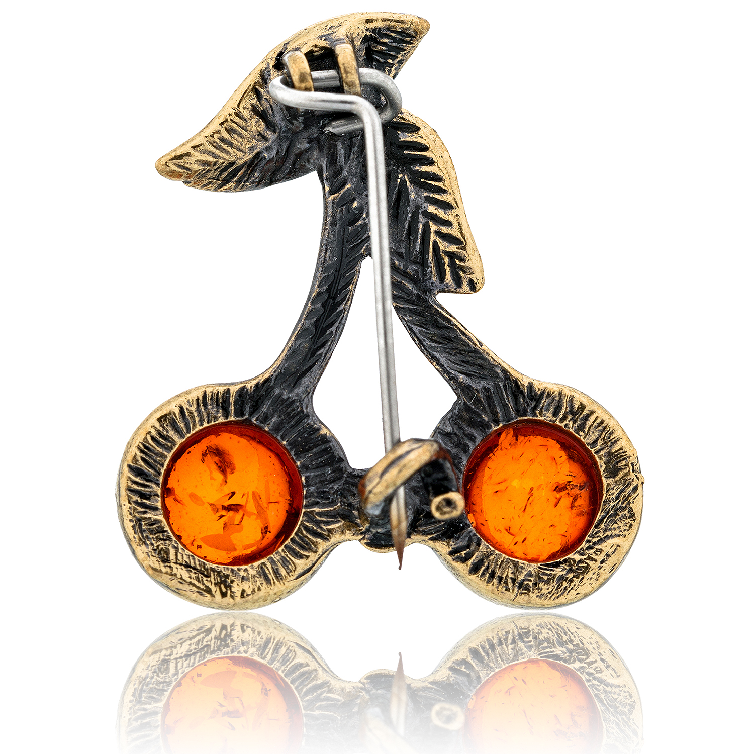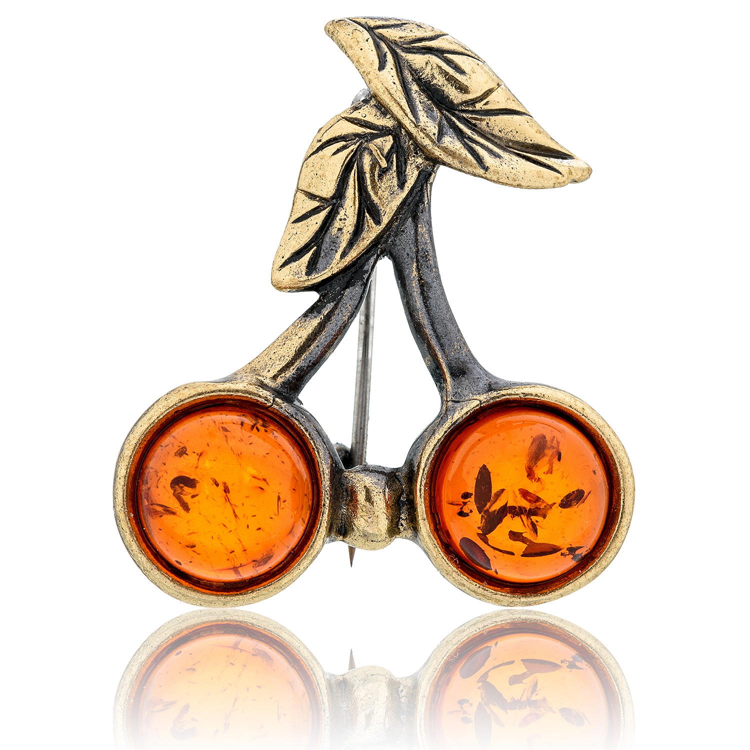 Брошь с янтарем "Вишенка"