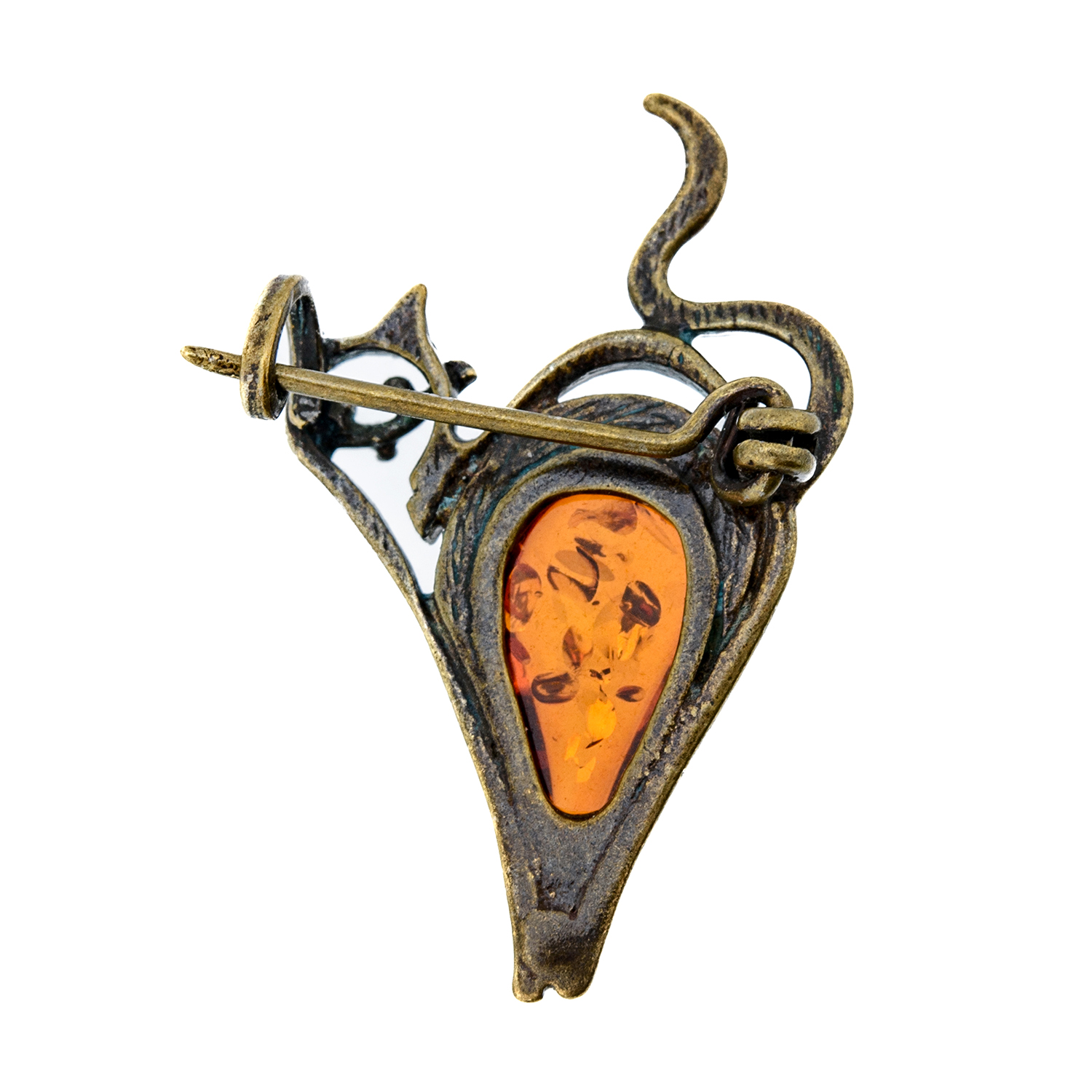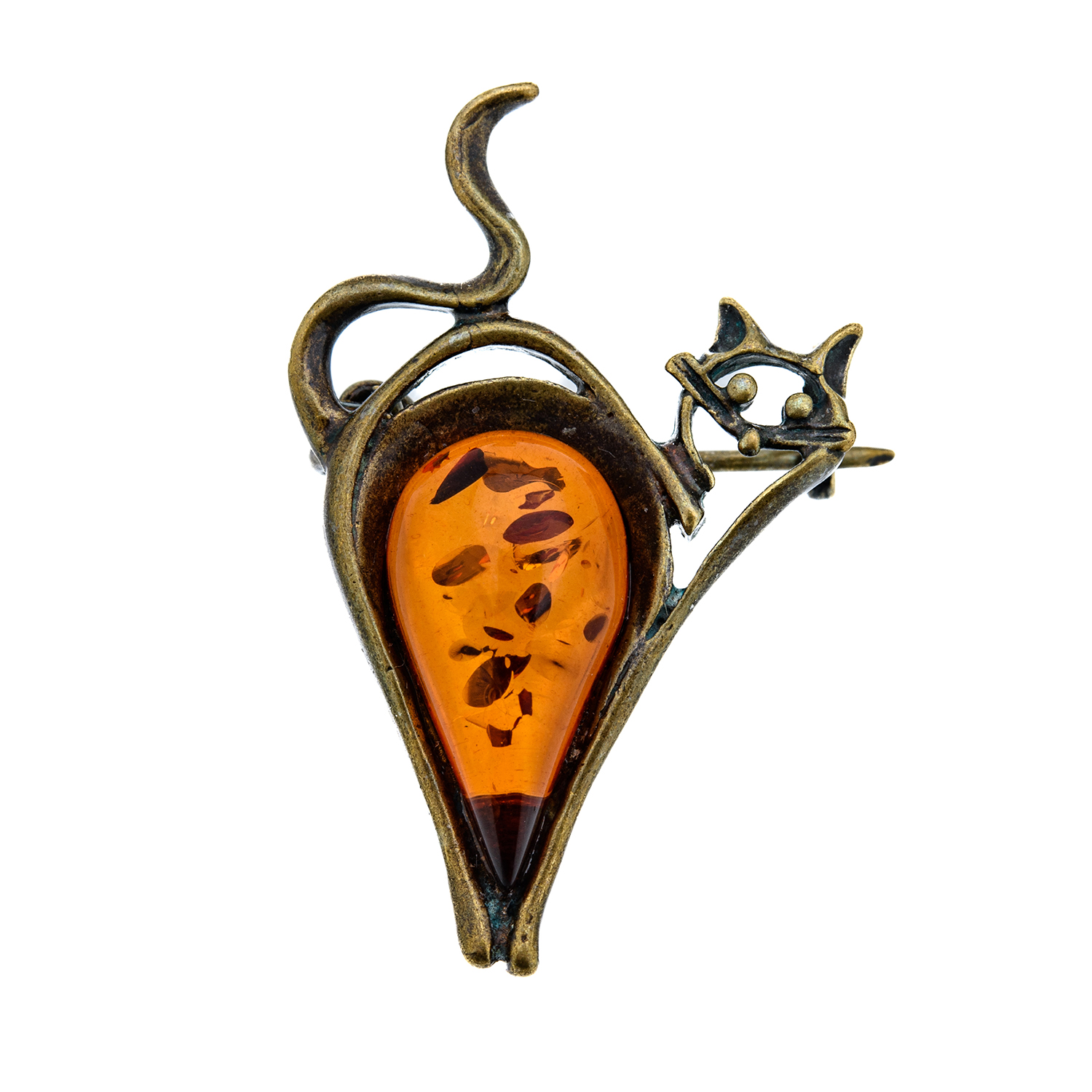 Брошь с янтарной вставкой "Кот".Кот - символ 2023 года.