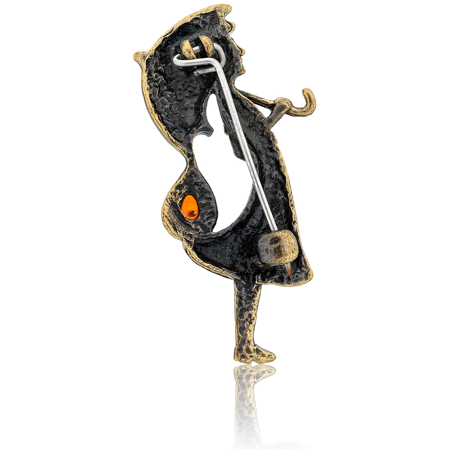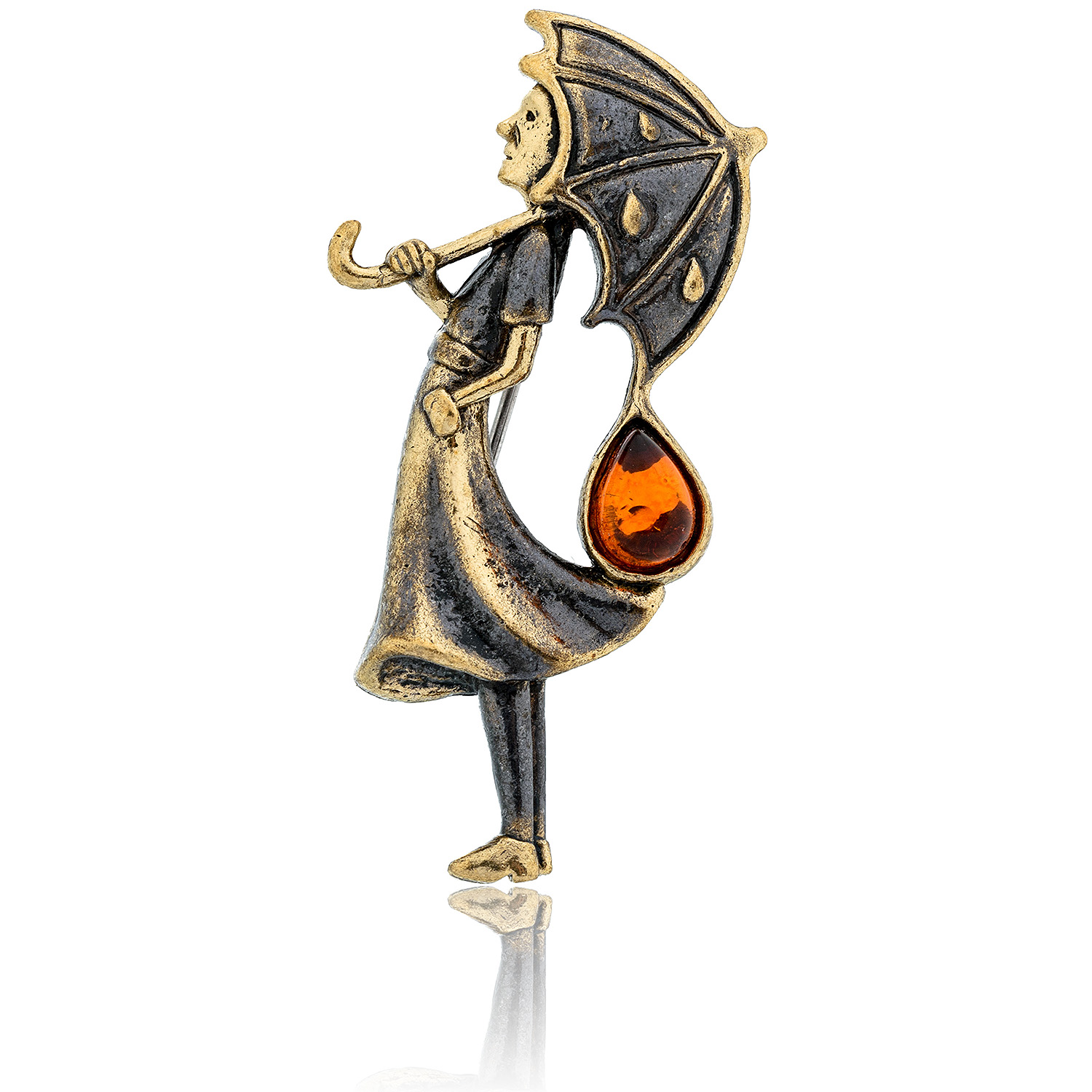 Брошь с янтарем "Девочка под дождем" (коньячный)